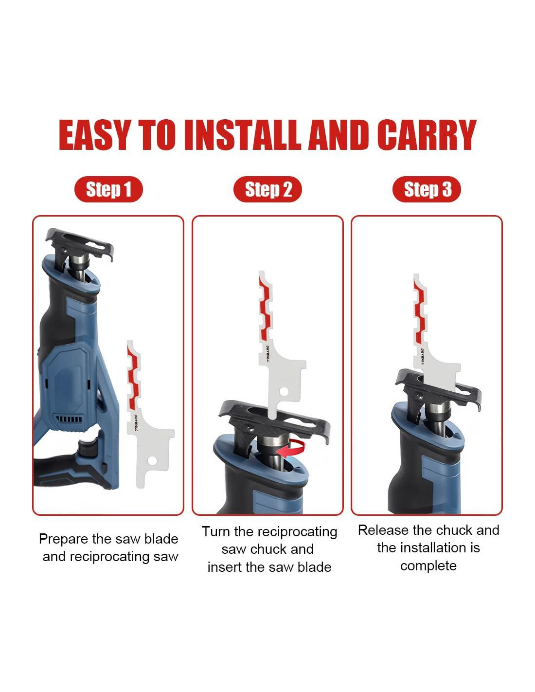 - [MANGO UNIVERSAL]: Mango de 1/2 pulgada (1.27 cm) se adapta a todas las herramientas Sawzall en el mercado, incluyendo Bosch, Dewalt, Sierra Sawzall, SKIL, Makita, Black & Decker, Ryobi, Hitachi, Flex, Hilti, Metabo, etc.