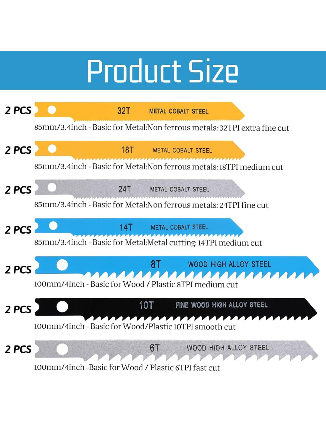 - Hojas de sierra de calar en U versátiles: El juego de 14 piezas de hojas de sierra de calar en U de EupHHonycs incluye 2 piezas de cada una de 6T, 8T, 10T, 14T, 18T, 24T y 32T, asegurando que tengas la hoja adecuada para cualquier tarea de corte. Perfecto para hojas de sierra de calar de artesano, hojas de sierra de calar para metal y hojas de sierra de calar para madera.
