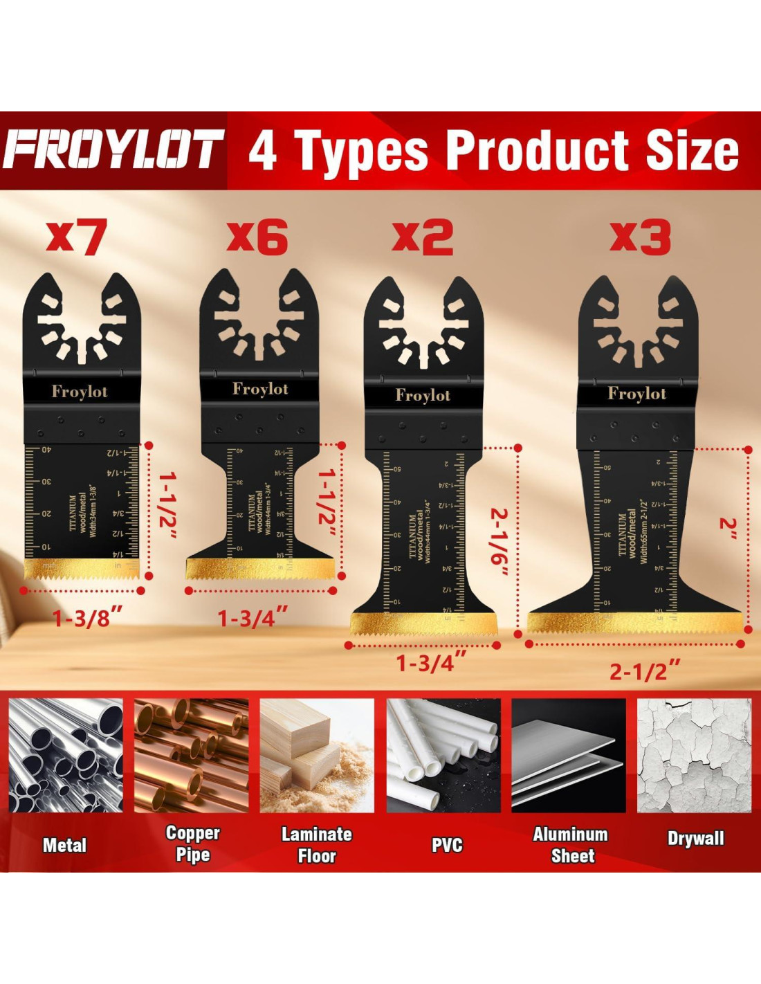 - Juego de hojas completo: Nuestro juego incluye: 40 hojas de sierra de acero al carbono de alta calidad (0.6 pulgadas (1.52 cm) de largo, 0.6 pulgadas (1.52 cm) de ancho) 3 hojas de cola de milano bimetálicas recubiertas de titanio (0.6 pulgadas (1.52 cm) de largo, 1.34 pulgadas (3.4 cm) de ancho) 3 hojas de ángulo estándar bimetálicas recubiertas de titanio (0.6 pulgadas (1.52 cm) de largo, 1.34 pulgadas (3.4 cm) de ancho) 3 hojas de cola de milano de metal de titanio (2-1/6 pulgadas (5.24 cm) de largo, 1-3/4 pulgadas (4.45 cm) de ancho) Perfecto para cortar madera, metal, clavos y aluminio.