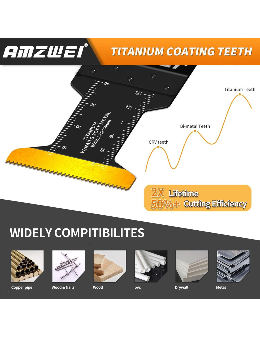 - [100PCS Hojas de Herramienta Oscilante] Contiene 100PCS hojas de herramienta oscilante, 5PCS hojas de titanio para cortar metal, clavos, 95PCS hojas de borde curvado para cortes en madera, paneles de yeso y plástico. Nuestras hojas de herramienta oscilante pueden satisfacer una variedad de necesidades, que podrían usarse para taller, hogar u otro lugar.