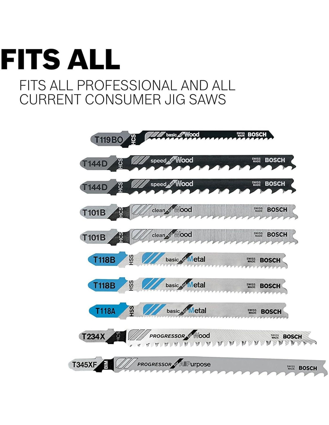 Las innovadoras hojas Bosch Velocidad para Metal ofrecen los cortes más rápidos y una larga vida en tubos de metal gruesos o delgados y perfiles metálicos. Un cuerpo bi-metal estrecho con dientes fuertes y agresivos elimina material rápidamente y deja un buen acabado en cortes rectos y suavemente curvados. Diseño de T-shank para un agarre y estabilidad máximos que se adapta al 90% de todas las marcas y modelos actuales de sierras de calar.
