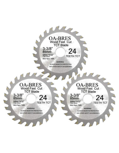 - FÁCIL DE OPERAR: La hoja de sierra circular mide 3-3/8 pulgadas (85mm), tiene 24 dientes. Corte delgado para una acción de corte rápida y suave y el tamaño del eje es de 19/32 pulgadas (15mm).