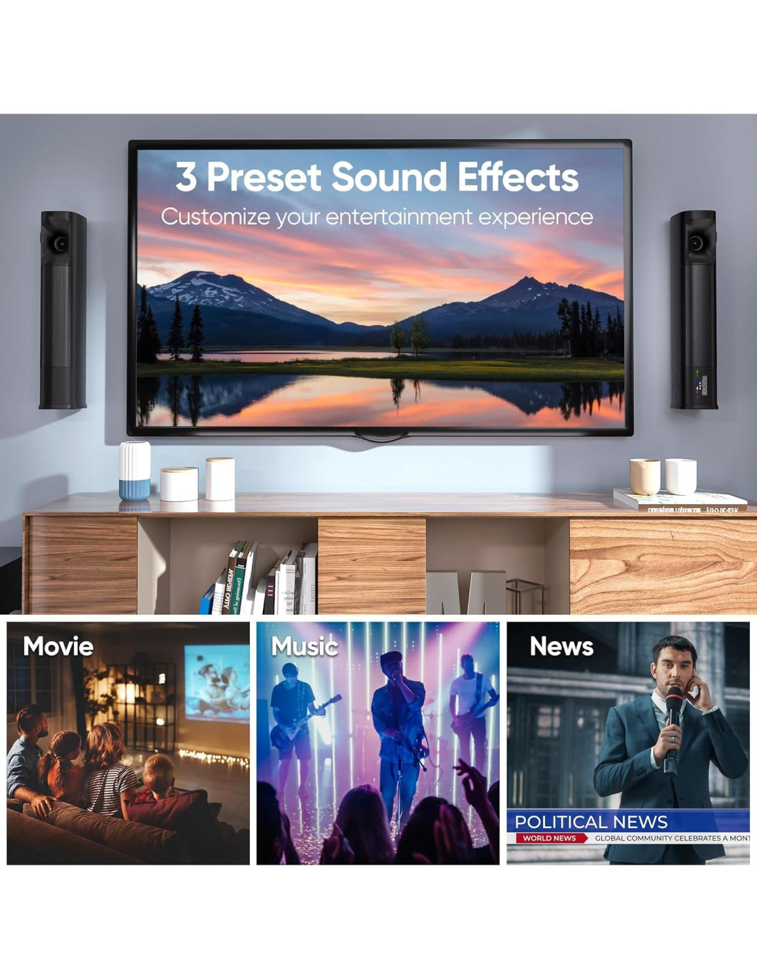 - Tecnología DSP - La barra de sonido Saiyin con tecnología DSP ofrece tres modos de sonido para películas, música y noticias, optimizando la configuración de audio para mejorar tu experiencia de escucha según tus preferencias.