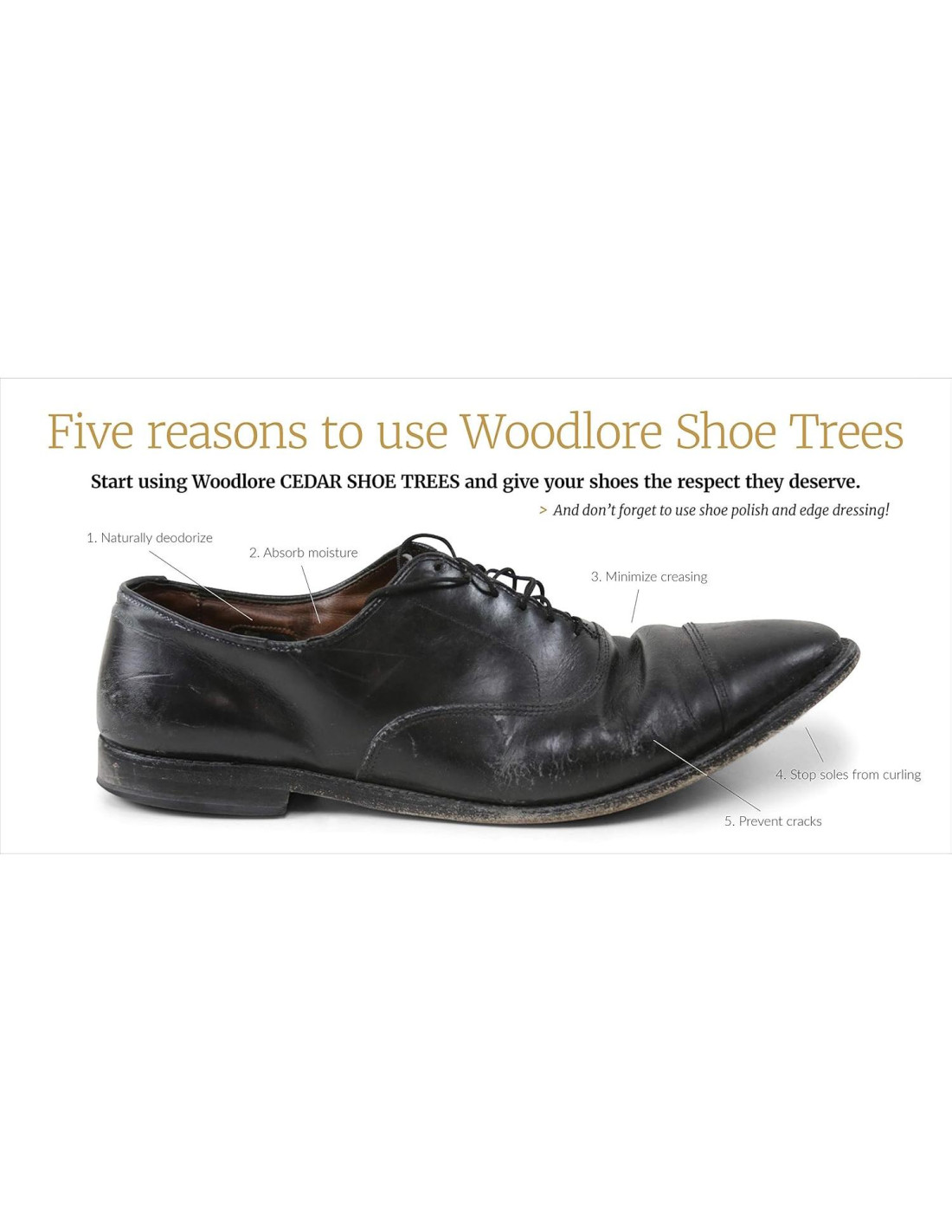Cada arbol de zapatos de cedro "Hecho en EE. UU." que fabrica Woodlore proviene de árboles de cedro rojo oriental cultivados de manera sostenible - cortados de los Ozarks de Arkansas y Missouri. ¡No toda la madera de cedro es igual! Nuestro cedro es conocido por ser el mejor del mundo porque es rico en madera roja. De la madera roja proviene una feroz capacidad de absorción de humedad y aceites fragantes. Estas cualidades ayudan a mantener tus zapatos secos, desodorados y luciendo geniales durante años. Garantizamos que nuestros productos contendrán un mínimo del 80% de madera roja. Un lijado fino le da a cada superficie un acabado sedoso. Y usamos solo el hardware de latón de mayor calibre para una durabilidad extra. Tales estándares intransigentes resaltan la belleza duradera de nuestros productos de cedro natural. De hecho, respaldamos nuestra artesanía con una garantía de por vida contra defectos mecánicos. Si bien nos enorgullecemos de nuestros productos, el servicio es igualmente importante. Y haremos todo lo posible para asegurarnos de que estés completamente satisfecho. Esa es una promesa. En 1987, Woodlore fue lanzado como una división de Allen Edmonds. Woodlore comenzó fabricando arboles de zapatos de cedro para proteger los finos zapatos de cuero cosidos de Allen Edmonds. Hechos para reflejar la calidad de nuestros zapatos y honrar nuestra herencia de Wisconsin, la instalación de fabricación se encuentra justo al otro lado de la carretera en Port Washington. La empresa fue nombrada "Woodlore" para que pudiera concentrarse en crear productos de madera para Allen Edmonds, así como para marcas de zapatos competitivas y grandes almacenes en todo el mundo. Estamos muy orgullosos de Woodlore y de cómo ha crecido desde sus humildes comienzos como una empresa de arboles de zapatos. En Woodlore, entendemos la importancia de preservar el medio ambiente para las generaciones futuras. Por eso practicamos la tala selectiva, que permite que el cedro aromático crezca más rápido de lo que se cosecha. Además, nuestro empaque es tanto reciclado como reciclable.