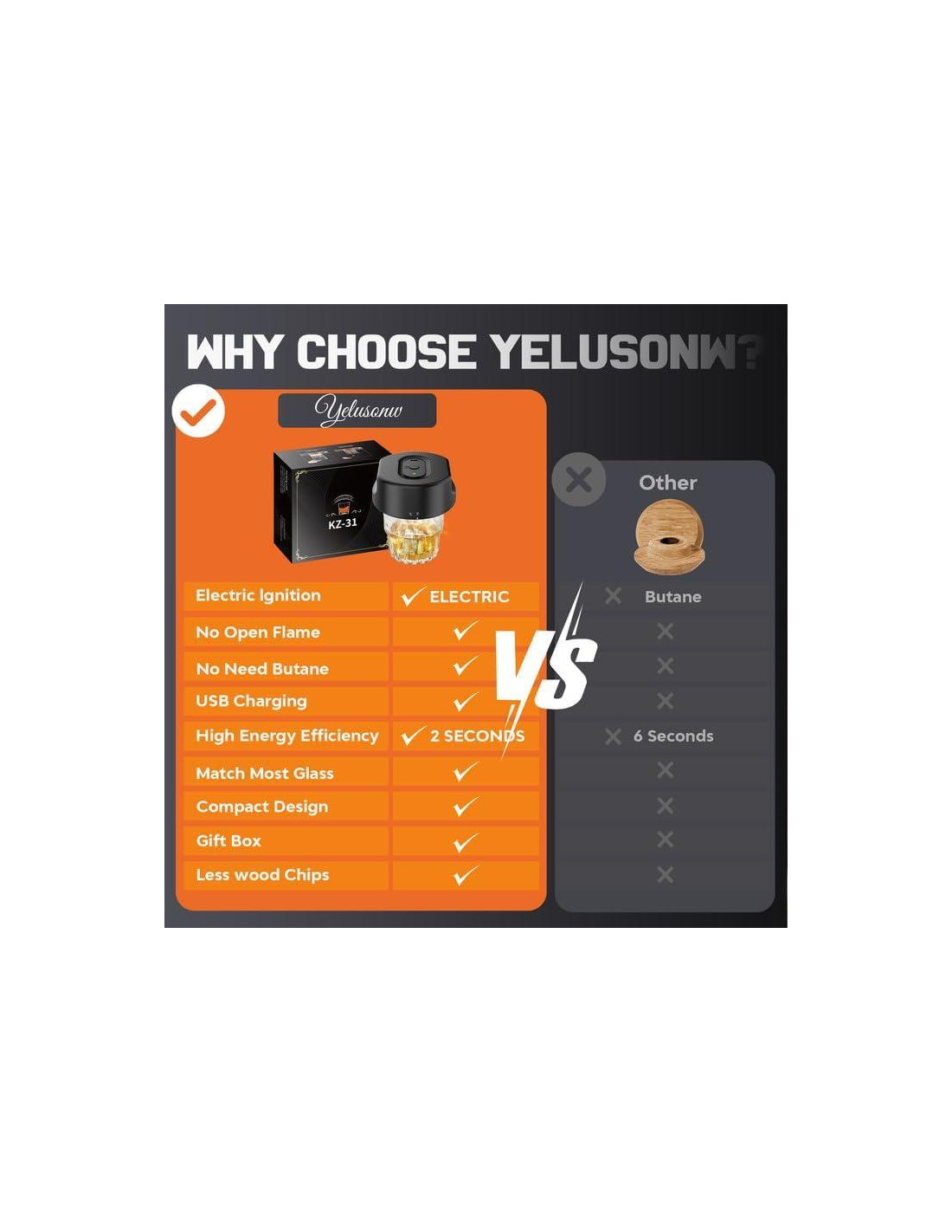 - Diseño Eléctrico Sin Llama - Sin Butano Necesario El diseño eléctrico todo en uno del kit de ahumador de whiskey simplifica el proceso de ahumado, y se carga a través de USB disfrutando hasta 30 minutos por carga completa, tiempo de trabajo único de aproximadamente 20 segundos.