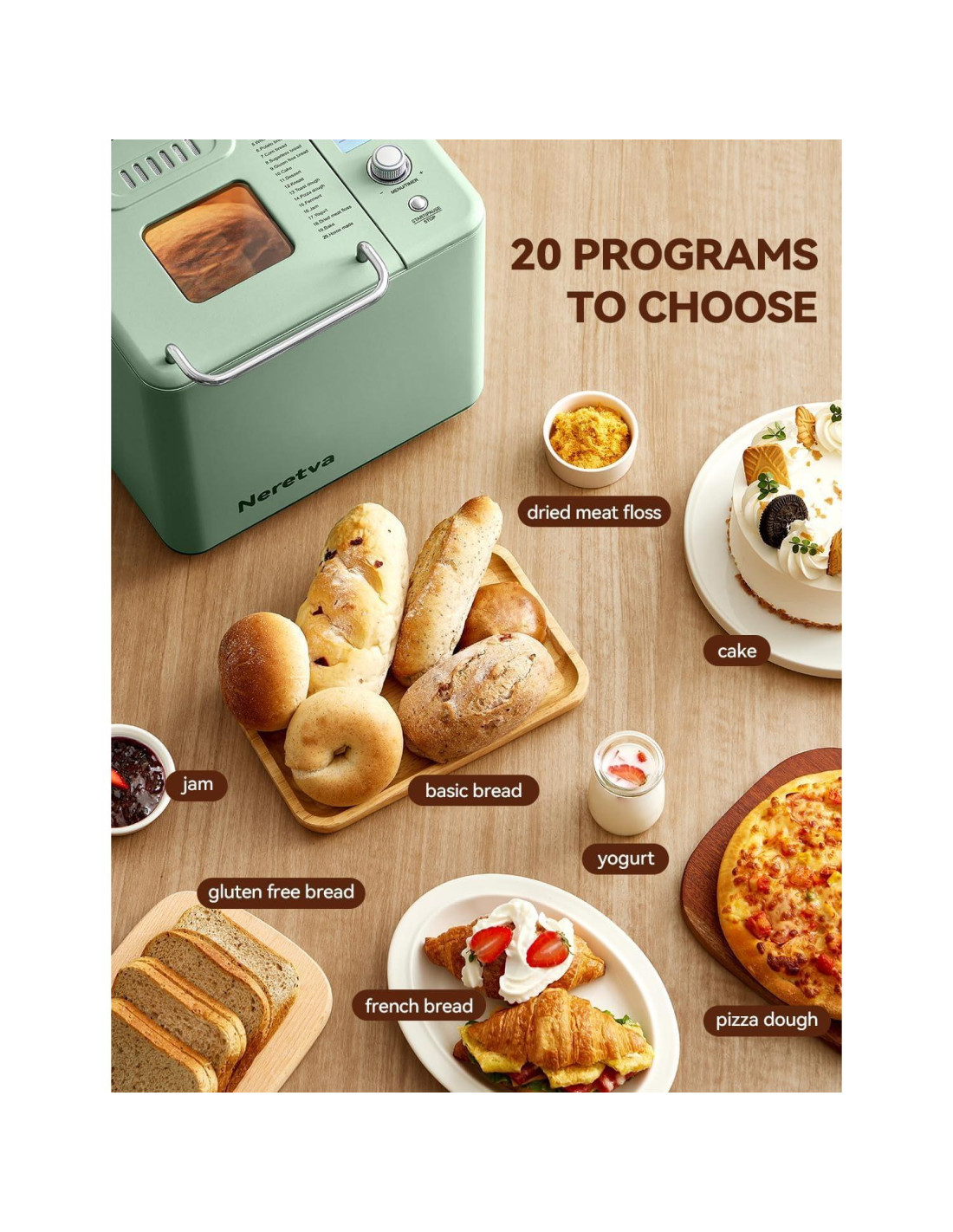 - DOBLE CALENTADORES CON HORNEADO CIRCUNDANTE DE 360 Y ALTA POTENCIA DE 550W: Las máquinas de pan Neretva tienen calentadores duales de 360 grados recién actualizados ubicados en la parte inferior y superior de la sartén, que pueden ajustar inteligentemente el proceso de horneado y promover un horneado uniforme para un pan esponjoso. La alta potencia de 550W permite un horneado rápido que acorta el tiempo de horneado en más de 1 hora.