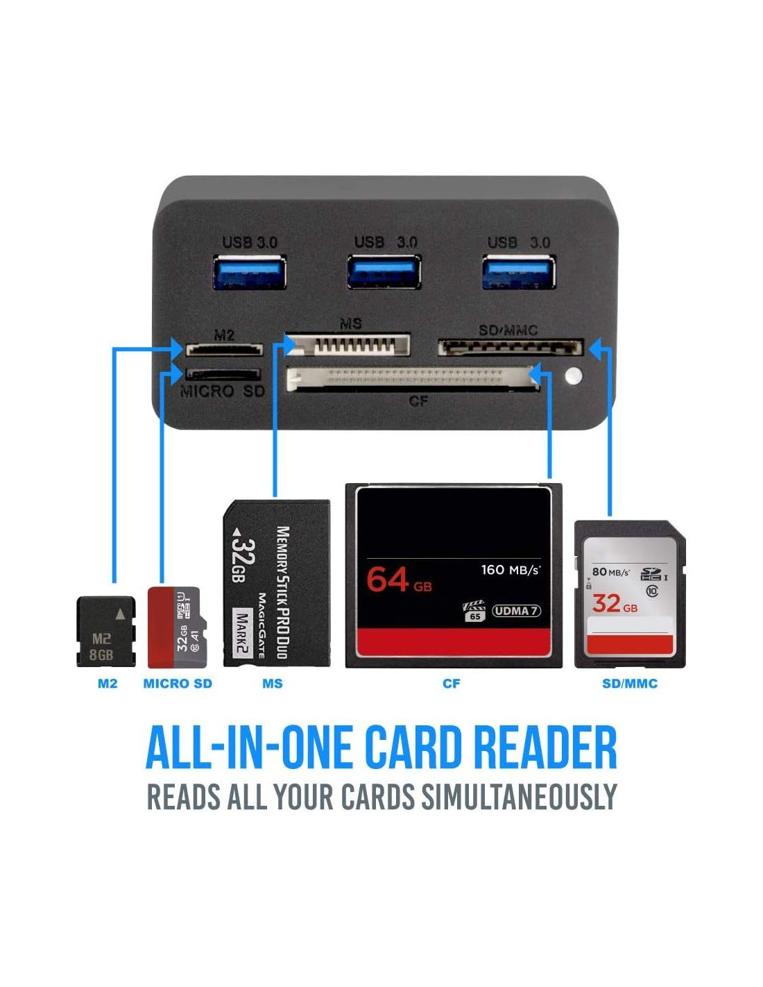 - TOTALMENTE EQUIPADO - Nuestro lector de tarjetas todo en 1 viene con 3 puertos USB para capacidades de HUB de carga. Las características de adaptador USB y plug and play portátil hacen de este producto algo único.