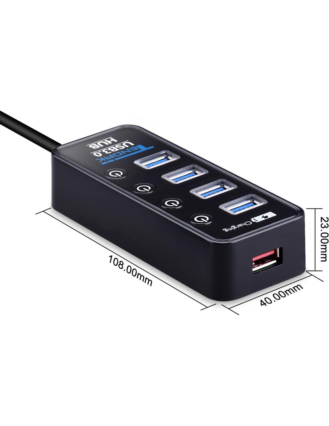- 1 puerto de carga inteligente (máx. 2.4A) en la parte inferior para cargar su teléfono/tableta/cámara, reconoce su dispositivo automáticamente y proporciona una corriente correspondiente. Longitud del cable USB 3.0: 100 cm (39 pulgadas), lo suficientemente largo y puede conectarse al puerto USB 3.0 trasero del escritorio.