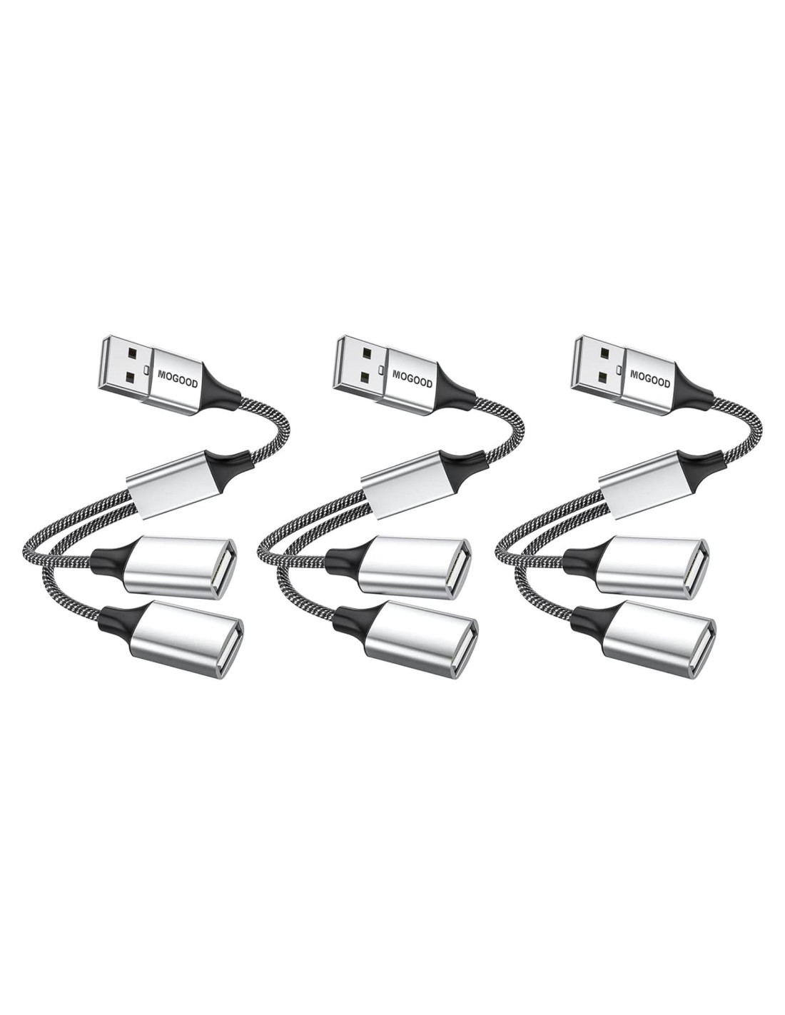 Haz tu vida más fácil. Nuestro objetivo es hacer la vida más fácil, disfrutar de la diversión de la tecnología. Nuestro producto proporciona un puente entre la vida y la tecnología, con MOGOOD puedes hacer que el trabajo sea más eficiente y la vida más conveniente. Somos la fábrica de origen del producto. Tenemos muchos tipos de productos para satisfacer diferentes necesidades en el trabajo y la vida. Si no estás seguro de que el producto sea compatible con tu dispositivo, no dudes en preguntarnos, algunos productos solo parecen funcionar con tu dispositivo en apariencia, pero no en realidad. Proporcionamos asesoramiento profesional para resolver tus dudas en el uso. Este divisor USB puede transformar uno de los puertos USB de tu computadora en dos con este hub USB. Ofrece velocidades de transferencia de datos de hasta 480 Mbps y también soporta hasta 1.5 Amperios de salida de potencia. 1. No funciona para USB de coche/Apple Carplay, ya que estos sistemas no soportan hubs USB. 2. Debido a la baja salida de potencia (aproximadamente 5V/1.5A), no puede cargar 2 dispositivos de alta potencia. 3. Dos auriculares conectados, solo uno funcionará. SOPORTA CARGA SIMULTÁNEA DE DOS TELÉFONOS CELULARES EN EL COCHE. Cable Divisor USB. Adaptador Divisor USB Y. Divisor USB 3.0. Doble USB 2.0. Cable de Alimentación USB 2.0. Cable de Extensión USB. USB A Macho a 2 Hembras.