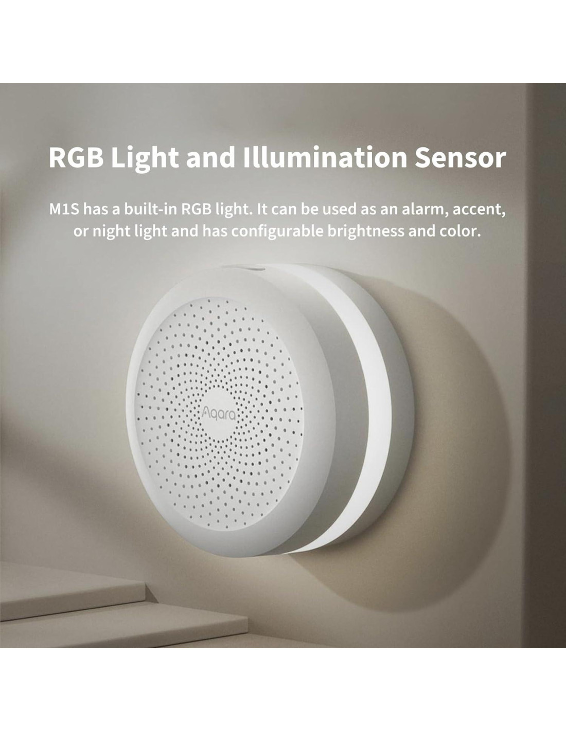 - [Sensor de Luz RGB e Iluminación] El M1S Gen 2 cuenta con una luz RGB incorporada con 18 potentes LED y un difusor. Puede funcionar como alarma, luz de acento o luz nocturna, ofreciendo brillo y color configurables. A diferencia de su predecesor, incluye un sensor de iluminación completamente funcional utilizable en automatizaciones a través de la aplicación Aqara Home. Las dimensiones del Aqara Hub M1S Gen 2 son 3.14 x 3.14 x 1.63 pulgadas (7.99 x 7.99 x 4.14 cm).
