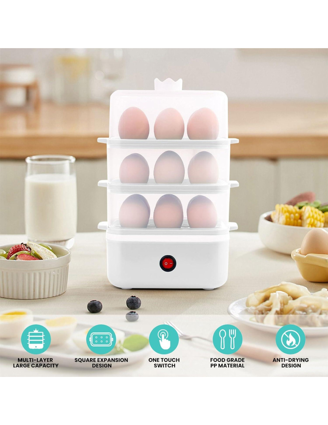 - MULTIFUNCIONAL: Tiene múltiples compartimentos para cocinar diferentes ingredientes al mismo tiempo. Este es el dispositivo conveniente perfecto para comensales exigentes, familias numerosas o trabajadores ocupados. Simplemente agrega la cantidad adecuada de agua, coloca los huevos en la bandeja de cocción y presiona el interruptor de encendido. La función de apagado automático funciona correctamente cada vez y es más rápida que los métodos tradicionales de cocina en la estufa.