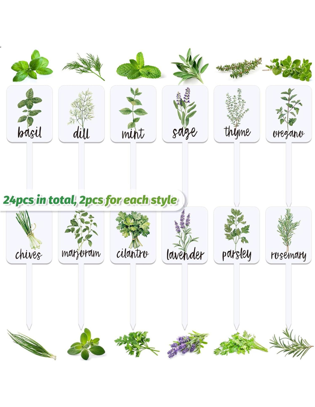 - Lo que recibirás - Se incluyen 24pcs etiquetas de plantas de acrílico en 12 diseños, cada diseño tiene 2pcs, suficiente para satisfacer tus diferentes necesidades para tu jardín.