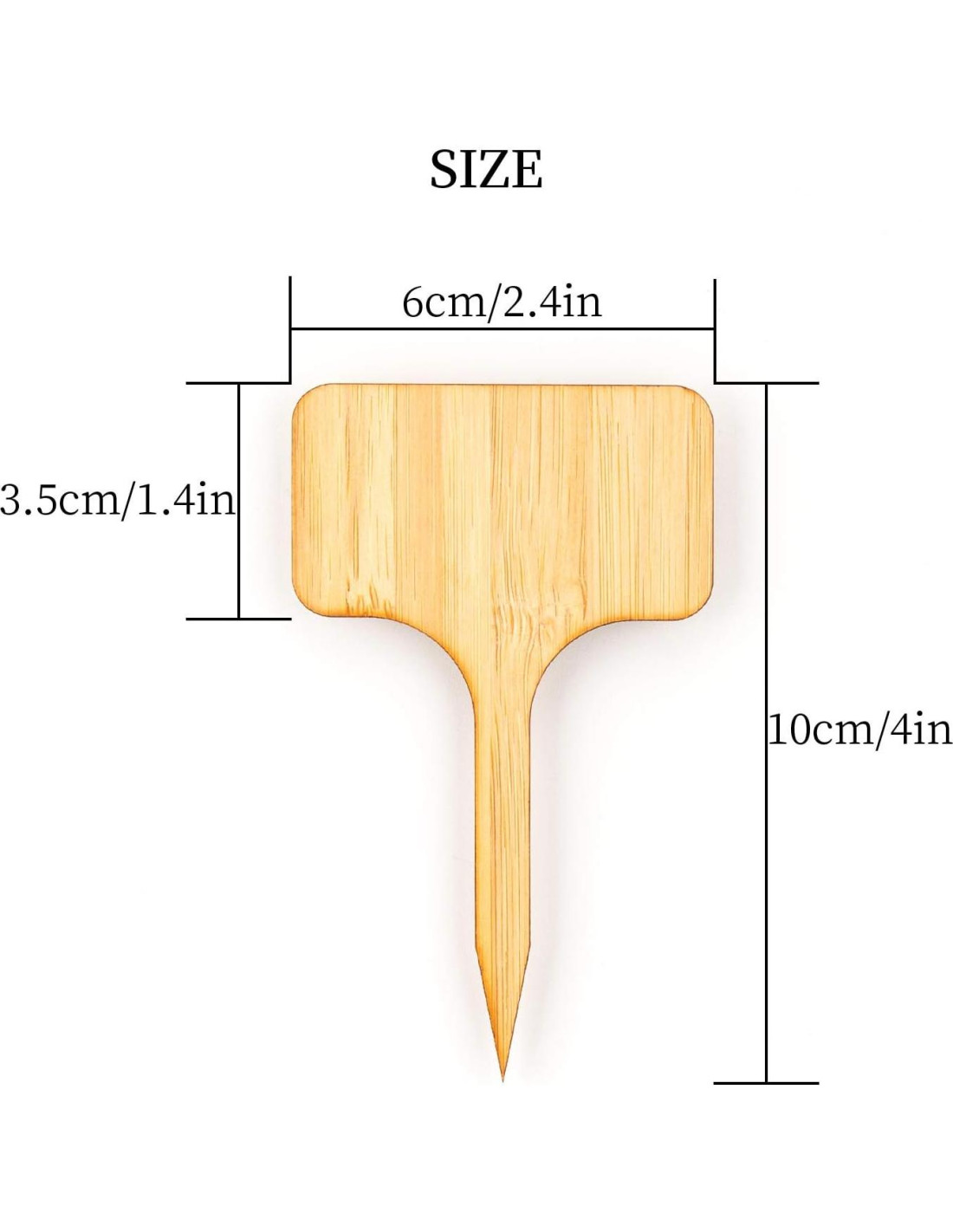 - Tamaño y Paquete: Etiqueta de Planta de Bambú: Aproximadamente 10 cm de largo, 6 cm de ancho. Bolígrafo Marcador: 14.2 cm de largo. Paquete: 30 piezas de etiquetas para plantas + 1 pieza de Bolígrafo Marcador.