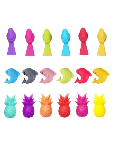 nuevo y de alta calidad Características: silicona de alta calidad, ecológica, suave, antideslizante y larga vida útil. Principalmente utilizado para pegar en copas de vino o botellas de bebidas, cuando bebemos, podemos identificar la copa de cada cliente con los marcadores de silicona. Marca tu copa o botella con estos lindos marcadores, marcadores de copas de vino de tema especial para fiestas. Pega estos marcadores en tu copa de vino, y podrás localizar rápidamente tu bebida en la jungla desordenada. Perfecto para fiestas, horas de cócteles, cenas y muchos otros lugares. Especificaciones: Tamaño de delfín: aprox. 3x3x1.7cm (1.18x1.18x0.66in) Tamaño de pájaro: aprox. 3x0.9x0.8cm (1.18x0.35x0.31in) Tamaño de piña: aprox. 2.8x1.8cm (1.10x0.70in) Color: Entrega aleatoria (si compras más de , los colores que recibas serán iguales o diferentes). Cantidad: 18pcs/set Nota: Por favor, permite un error de 0-1cm debido a la medición manual. Asegúrate de que no te importa antes de pujar. Debido a la diferencia entre diferentes monitores, la imagen puede no reflejar el color real del artículo. ¡Gracias! El paquete incluye: 6 marcadores de copas de vino delfín 6 marcadores de copas de vino pájaro 6 marcadores de copas de vino piña (otros accesorios de la demostración en la imagen no están incluidos!)