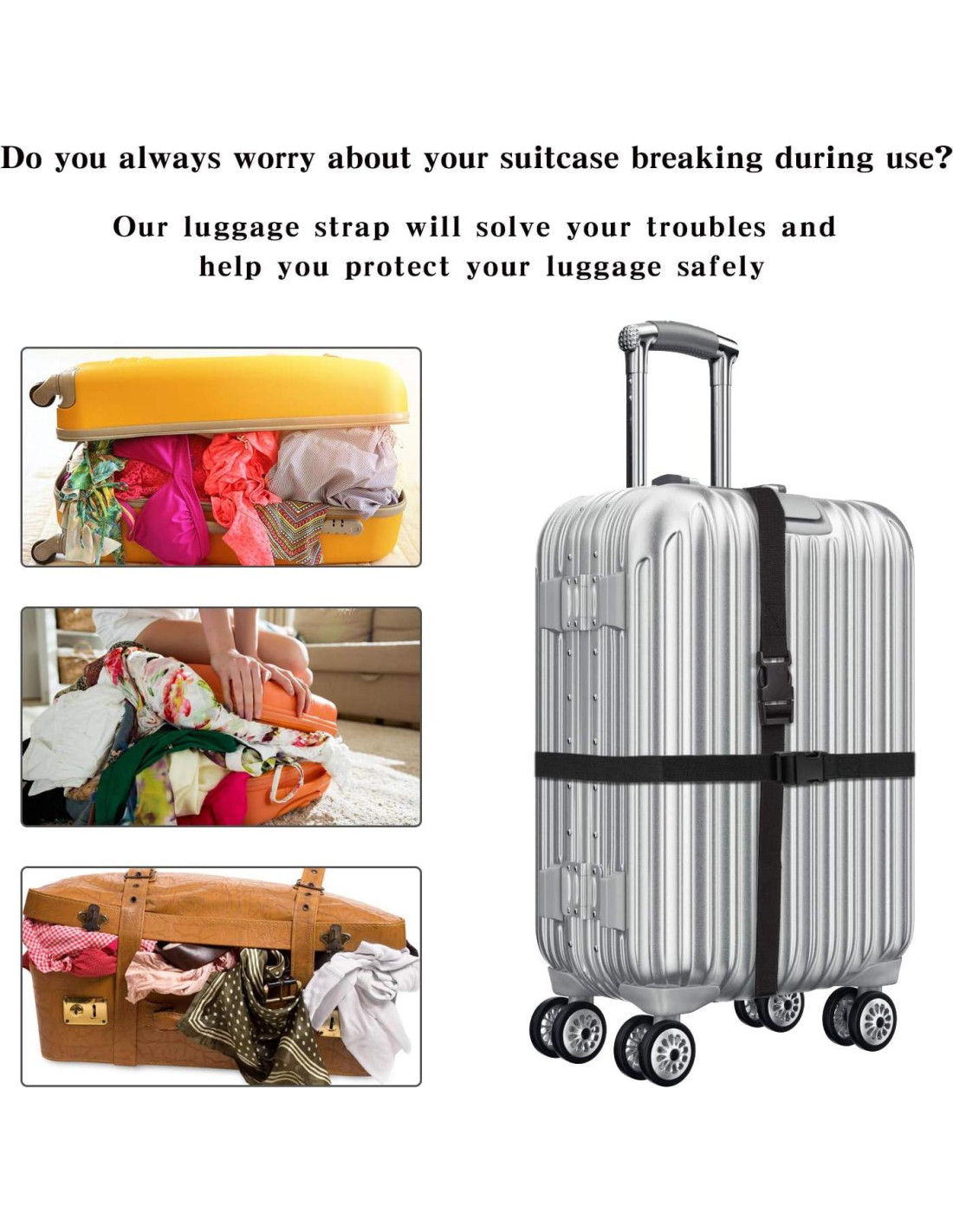 - ADJUSTABLE SIZE: El tamaño de las correas de equipaje es de 150cm de largo por 2.5cm de ancho. Es conveniente y fácil de alargar o acortar según las necesidades del usuario.