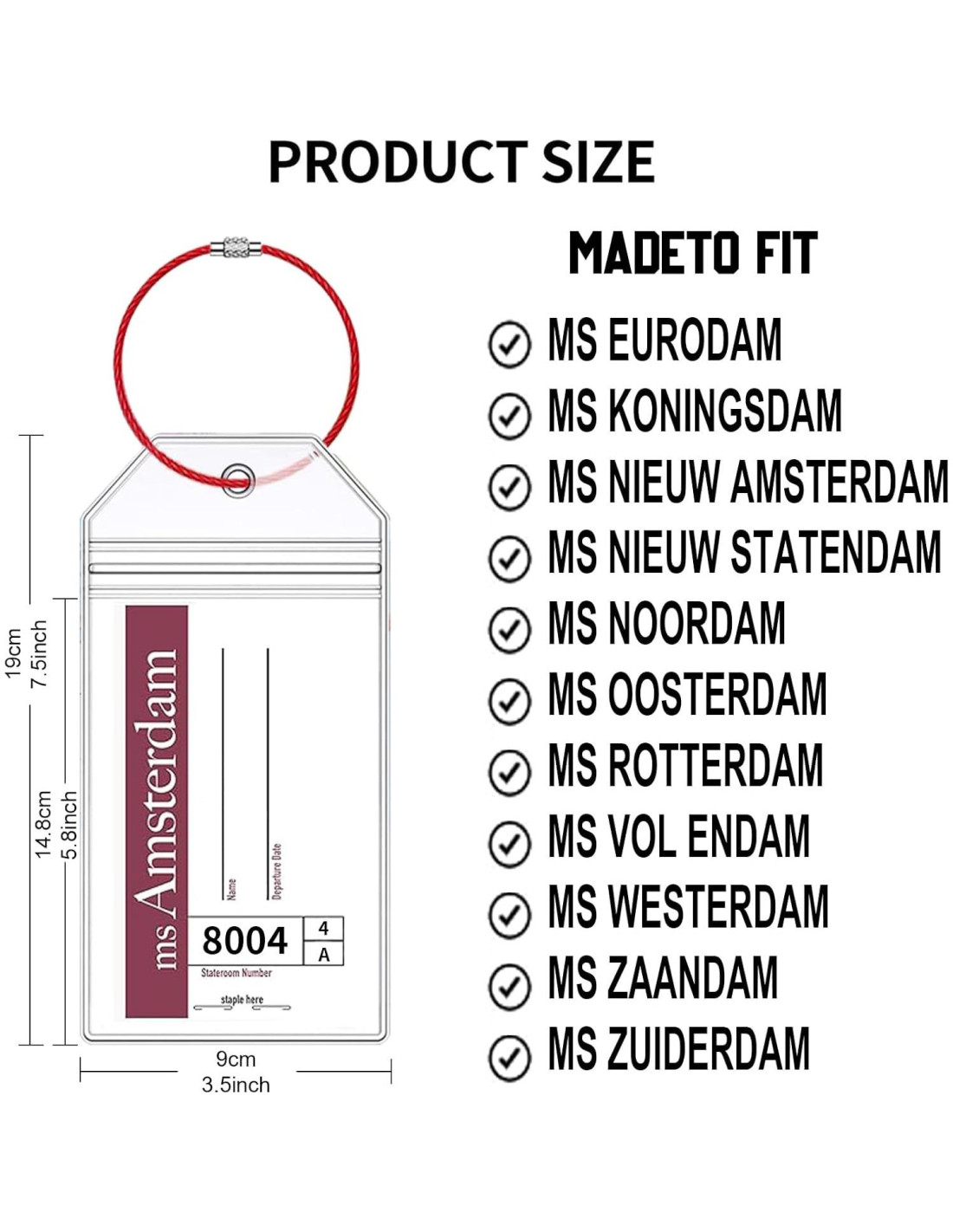 - Accesorios de Crucero Incluyen: Nuestro conjunto de soportes de etiquetas de equipaje de crucero Holland America incluye 6 anillos de acero trenzado de diferentes colores y 6 soportes de etiquetas de equipaje transparentes. Último diseño, ajuste perfecto para las líneas de cruceros Holland America y Carnival 2025-2026 o etiquetas de bricolaje y más.