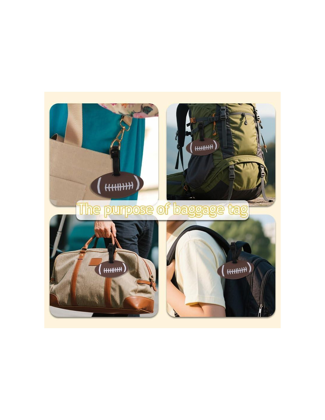 - Etiquetas de Equipaje Multifuncionales: El soporte de etiqueta de equipaje de rugby de fútbol puede usarse como etiquetas identificadoras, etiquetas de nombre de mochila, etiquetas de bolsa de rugby, etiqueta de equipaje para maletas bolsa etiquetas de viaje identificadoras, regalos de fútbol al por mayor al final de la temporada, rellenos de bolsas de regalo de fiesta temática de fútbol, etc.