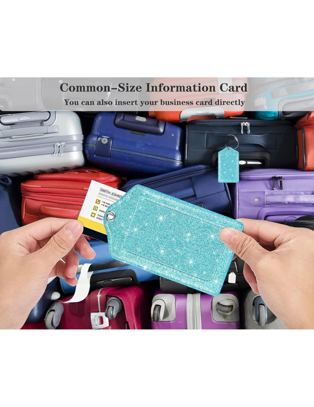 - [Diseño Estiloso y Único] Nuestras etiquetas de equipaje están diseñadas por COCO ROSSI, el identificador de equipaje brillante tiffany te permite encontrar rápidamente tu equipaje de mochila, evitando perder pertenencias en el aeropuerto.