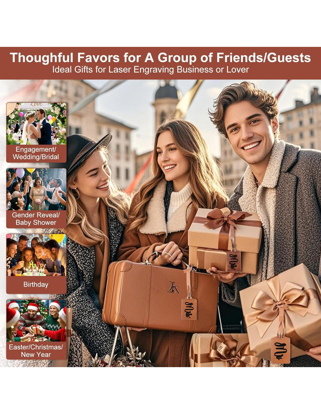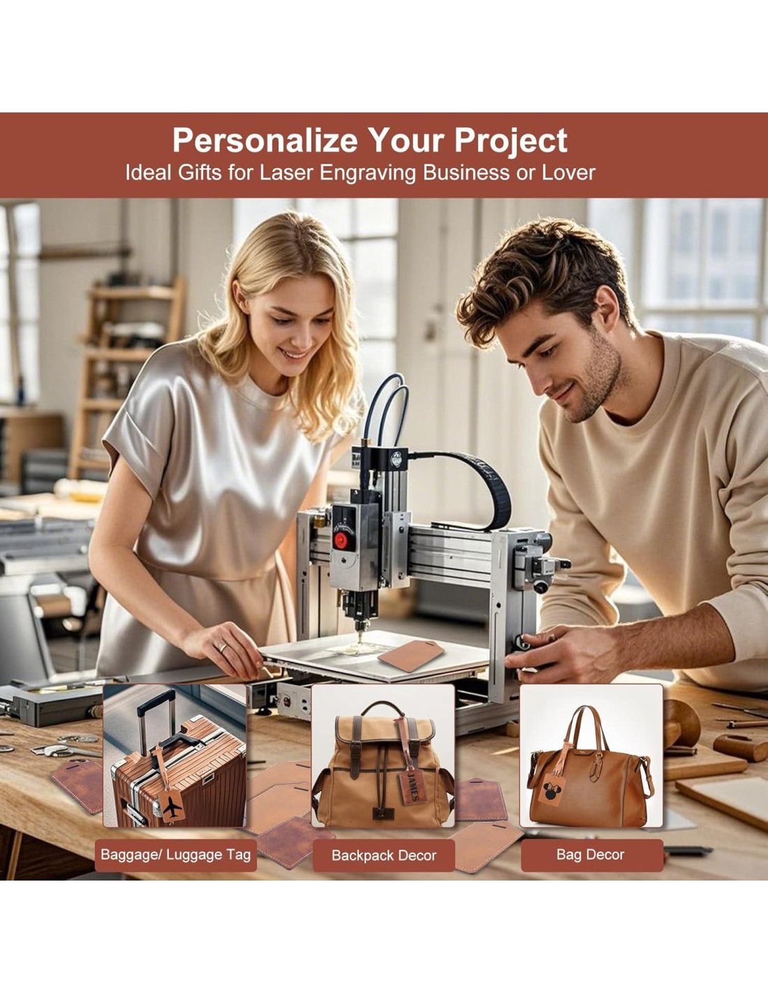 - Las etiquetas de cuero PU son un accesorio imprescindible para grabado láser en cualquier viaje. Pueden marcar el equipaje para distinguirse fácilmente de cientos de otros en el aeropuerto, o añadir personalidad a mochilas y bolsas decorativas. Puedes personalizar etiquetas de nombre, o diseñar el logotipo de la empresa o del equipo para actividades de organización, o crear una etiqueta de indicación especial para mascotas o perros de servicio