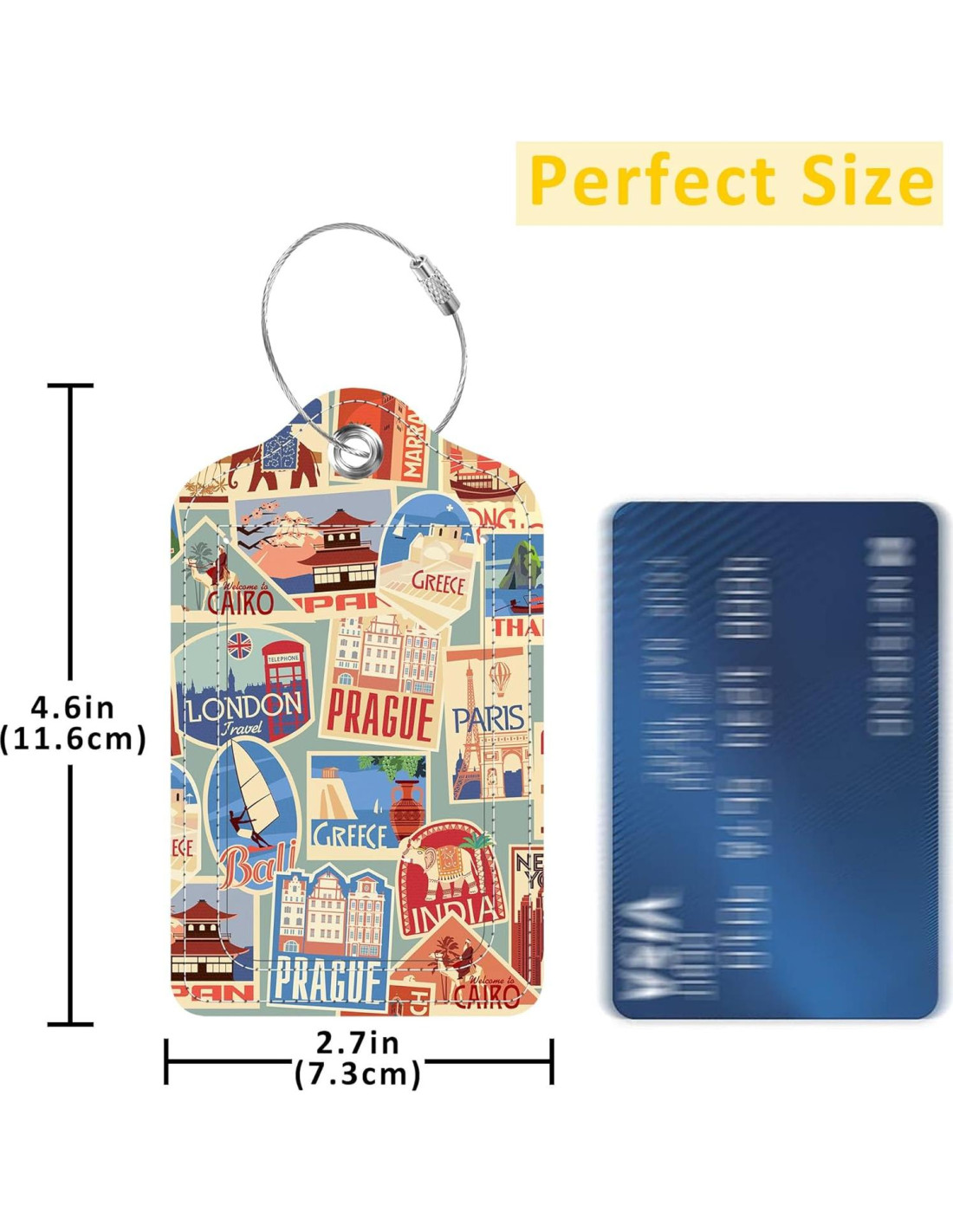 - [DISEÑO ESPECIAL] Los patrones de nuestras etiquetas de equipaje están cuidadosamente diseñados con tecnología de impresión avanzada para mantener los colores vívidos y no fáciles de desvanecer. La etiqueta de equipaje llena de personalidad es fácil de identificar, permitiéndole encontrar rápidamente su equipaje.
