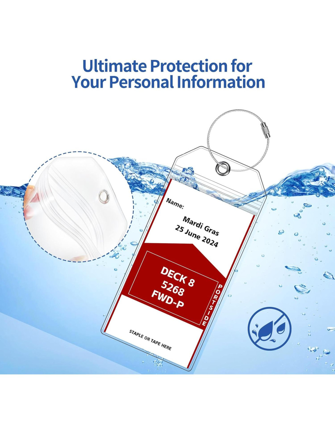 - Esenciales de Crucero: El sello superior asegura una etiqueta de equipaje impermeable y clara en cualquier condición climática; Hecho de plástico resistente y hardware de acero inoxidable, nunca te preocupes por perderlo o que se caiga