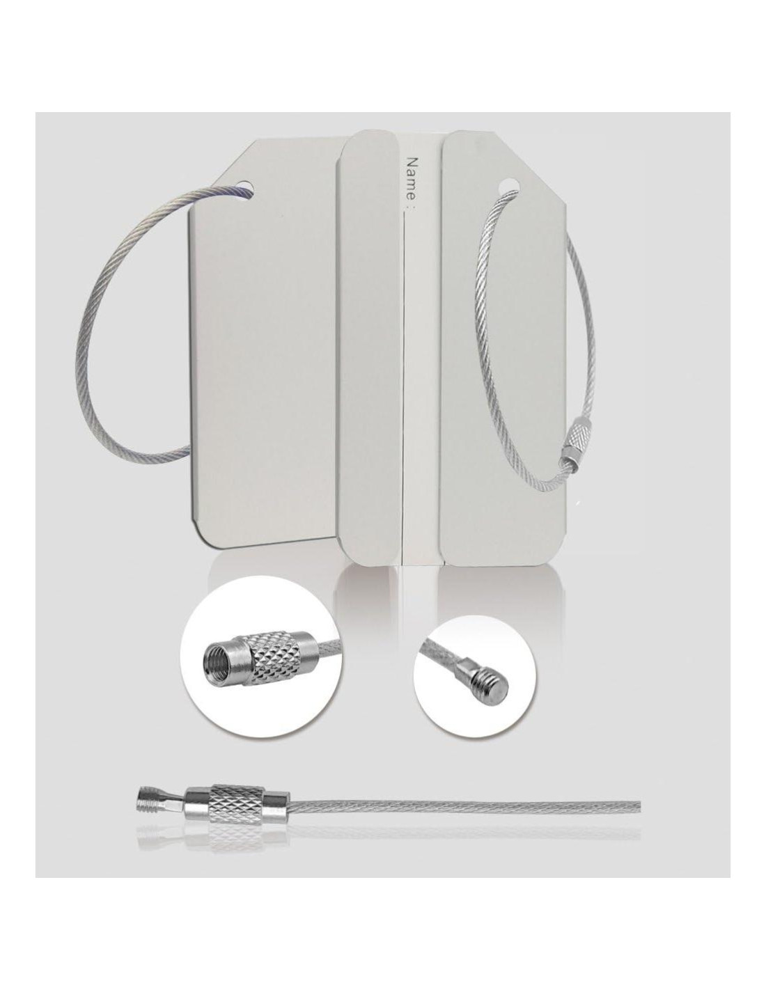 - PAQUETE: Cada paquete de etiquetas de equipaje incluye: estuche de aleación de aluminio + cuerda de acero inoxidable + papel en blanco + cubierta de PVC frente al papel.