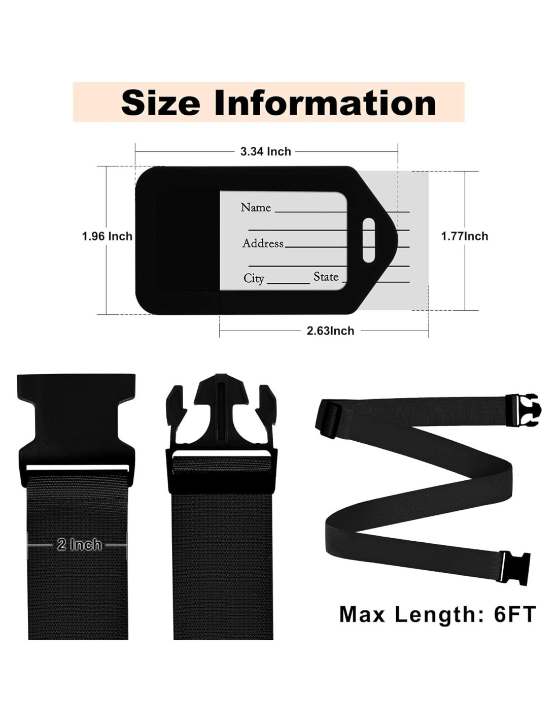 Nuestro resistente juego de correas y etiquetas para equipaje proporciona protección confiable para tus pertenencias durante el viaje, manteniéndolas seguras y protegidas.