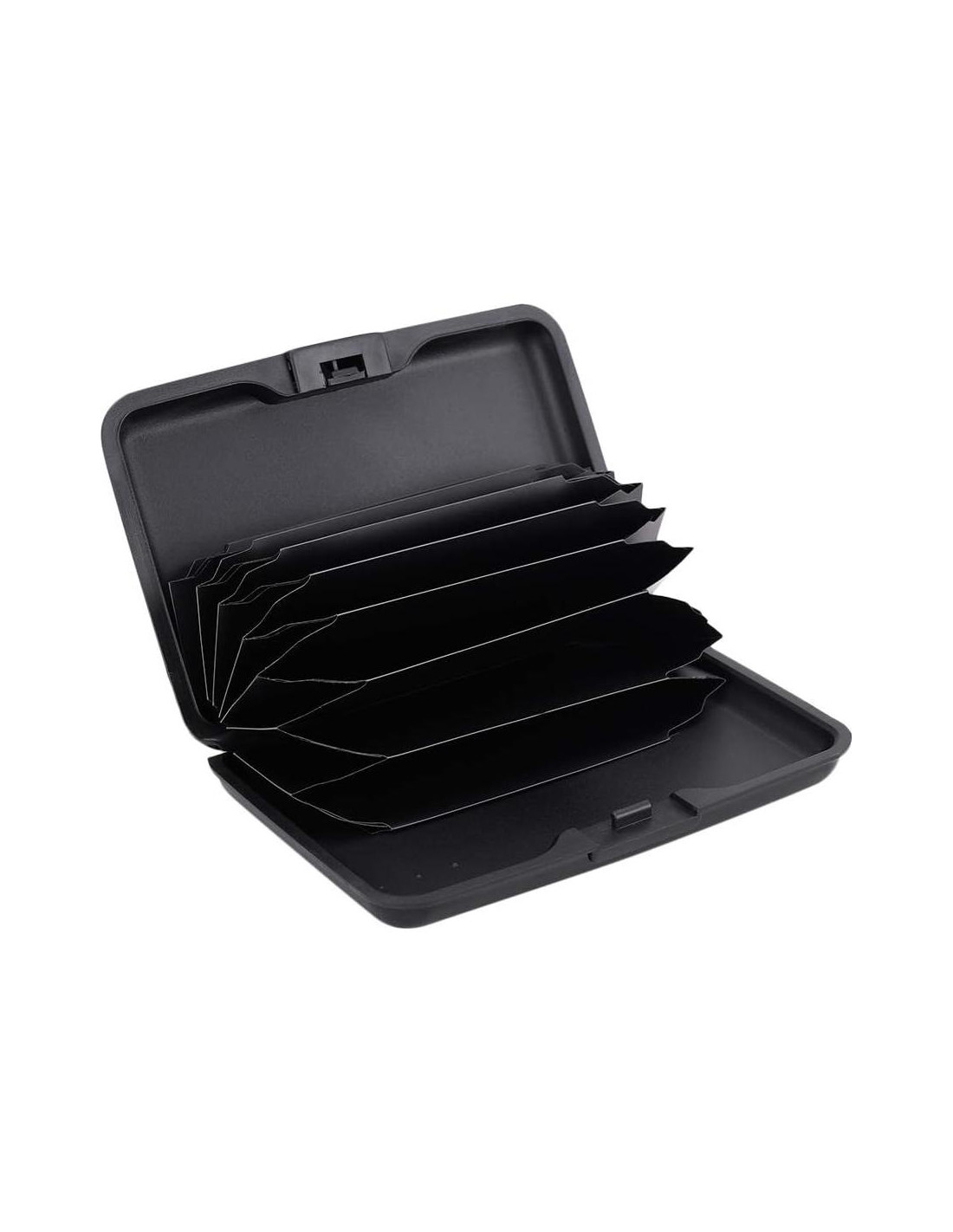 - MATERIAL de este soporte de tarjetas de crédito: carcasas de aluminio y cierre de plástico ABS. Con 7 ranuras tipo acordeón, capacidad para más de 9 tarjetas de crédito o 20 tarjetas de visita.