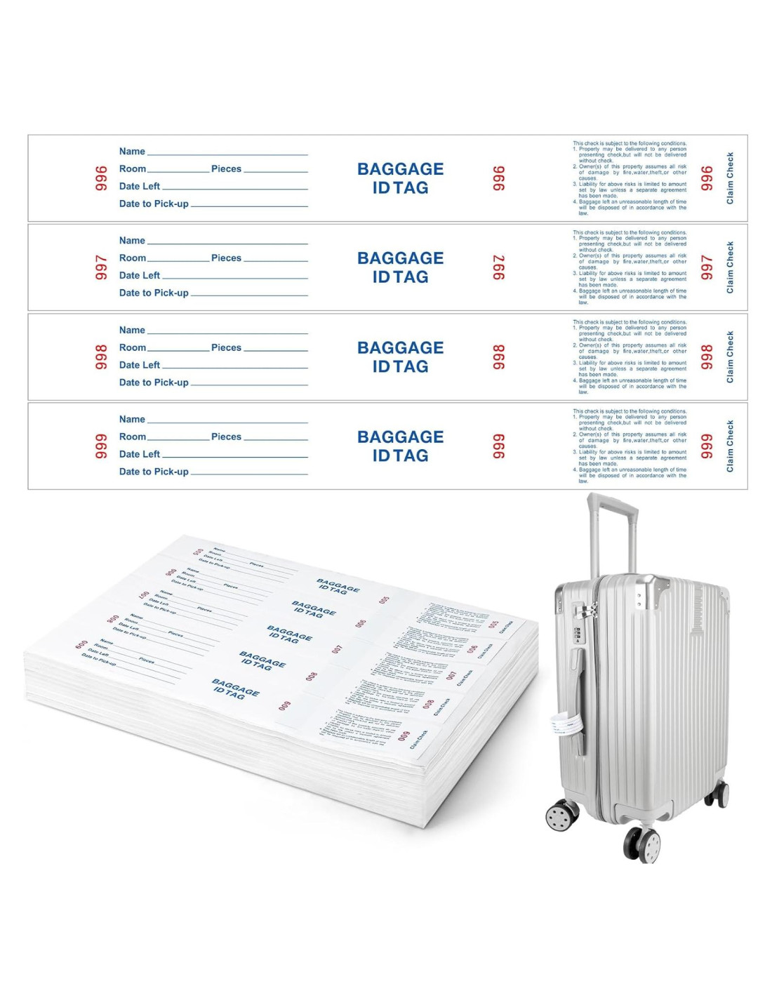 - Diseño Seguro y Amigable para el Usuario: las etiquetas de papel para maletas están numeradas del 000-999 y se pueden marcar con información del cliente; Pueden ser arrancadas en el troquel como un talón; Hay pegamento en la parte posterior, y puede ser autoadhesivo; Simplemente envuelva la etiqueta alrededor del mango del equipaje y péguela con el pegamento en la parte posterior; Arranque el talón y proporciónelo al cliente como un comprobante para recuperar el artículo
