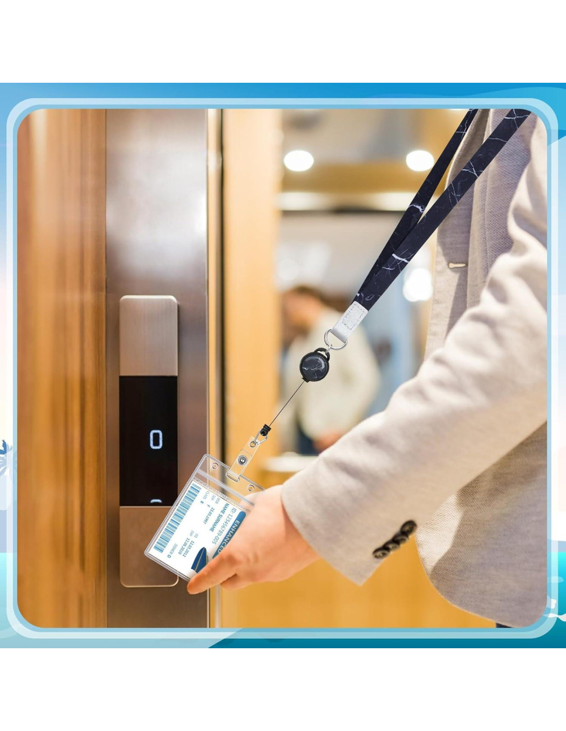 - Carrete de Insignia Retráctil: Los carretes de insignia retráctiles pueden extenderse hasta 40.64 cm, lo que permite abrir la puerta fácilmente sin quitar tarjetas de presentación, tarjetas de identificación o llaves