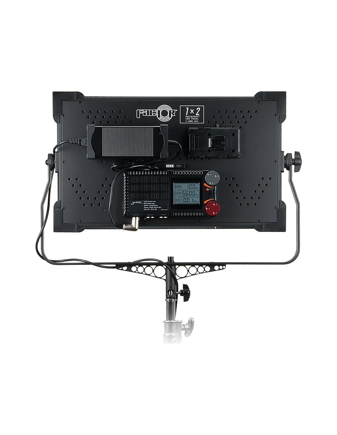 La luz FACTOR 1x2 es un potente panel de luz LED bicolor que emite ~6,300lx a temperatura de color de luz diurna completa, sin puntos calientes, sin sombras múltiples, todo en una luz robusta que es perfecta para sesiones en estudio o producciones a gran escala en locaciones. Es perfecta para grabar tanto fotos como videos. Tienes control total sobre el brillo y la temperatura de color, y puedes usarla con cualquier corriente doméstica o utilizar una batería de estilo V-lock. Cuando disparas con un panel de luz LED regular, probablemente has notado que la salida de luz a menudo es dura. Todos esos LEDs significan muchas sombras micro desagradables y un efecto poco favorecedor en los rostros. Sin embargo, la luz FACTOR 1x2 cuenta con tecnología de chip LED y un difusor incorporado - este enfoque suaviza la salida de luz sin sacrificar potencia, sin puntos calientes ni sombras múltiples. El otro problema significativo con los paneles LED bicolor convencionales es que "bicolor" significa media potencia - un panel de luz LED bicolor de 500 LEDs emite la misma cantidad de luz que un panel de luz diurna completa de 250 LEDs. La diferencia de la FACTOR 1x2 es que la luz cuenta con chips LED precisos y potentes en lugar de bombillas. Los chips LED de tungsteno están ubicados entre los chips LED de luz diurna. Este diseño compacto y eficiente significa que podemos ofrecer rendimiento y flexibilidad de doble color sin la pérdida de potencia de un panel LED bicolor convencional. Hablando de potencia: la FACTOR 1x2 emite ~6,300 lúmenes a luz diurna completa y ~5,000 lux a temperatura de color de tungsteno. Especificaciones: 3200-5600k Tungsteno / Color Diurno 10-100% Dial de Regulador de Potencia Índice de Renderizado de Color >96 200w Consumo Máximo de Potencia DC 24V Entrada de Potencia XLR de 4 Pines Conexión Remota DMX de 3 Pines Kit Incluye: Luz Bicolor FACTOR V-4000 ASVL Regulable Soporte de Montaje para Estudio de Luz de 5/8" Adaptador de corriente AC 110-240v y Cable de Alimentación Barndoor extraíble y con clip