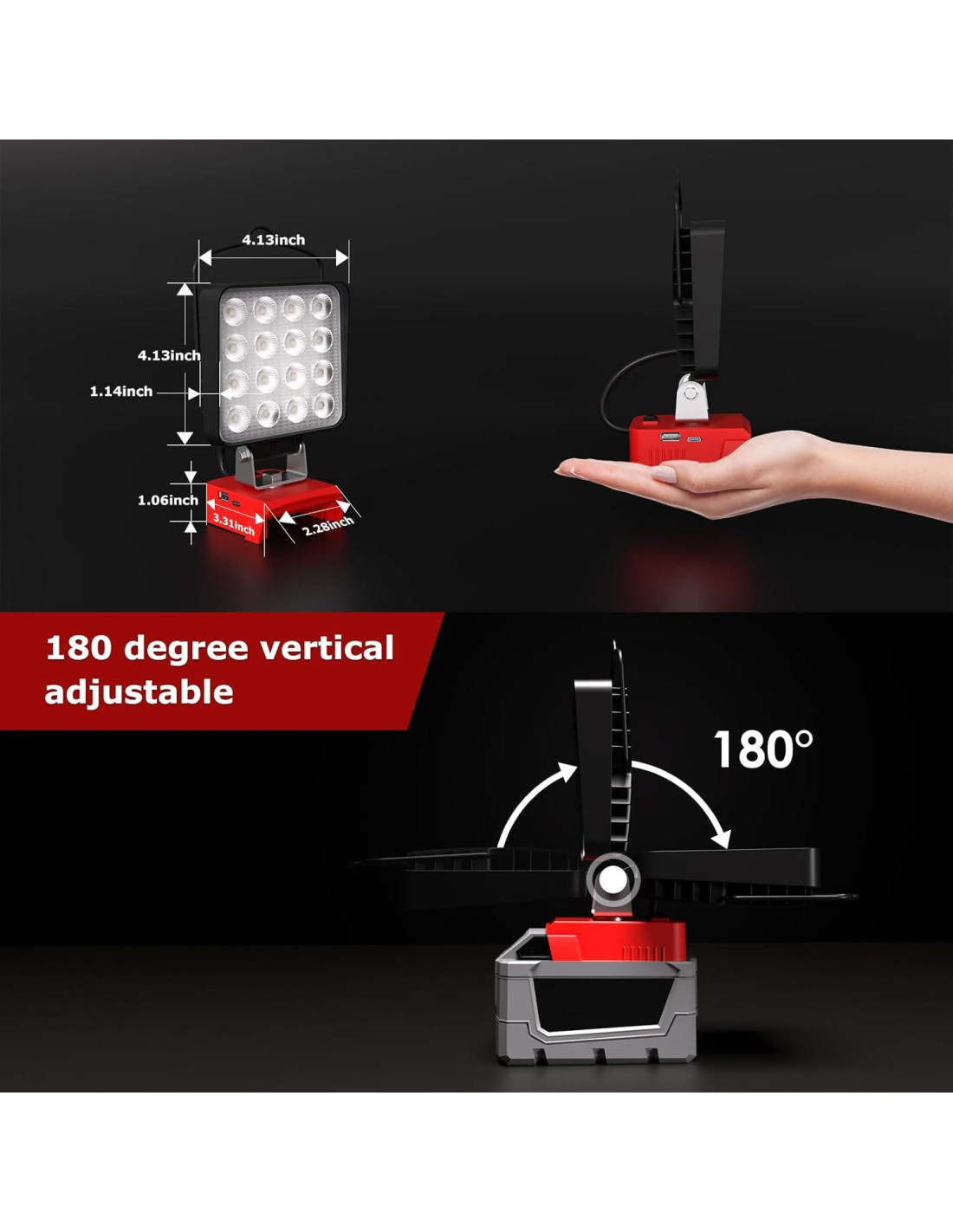 - Uso Amplio y Fácil: La luz de área LED portátil Lanka con cabeza de lámpara a prueba de agua es portátil. Esta luz de trabajo LED con soporte para baterías milwaukee no solo aborda prioridades necesarias por profesionales en el sitio de trabajo, sino que también es excelente para una variedad de situaciones que incluyen taller, construcción, mantenimiento, camión, garaje, bancos de trabajo, iluminación de emergencia, reparación de automóviles, camping, senderismo, pesca, etc. La luz de inundación de batería milwaukee inalámbrica también es un gran regalo para hombres.