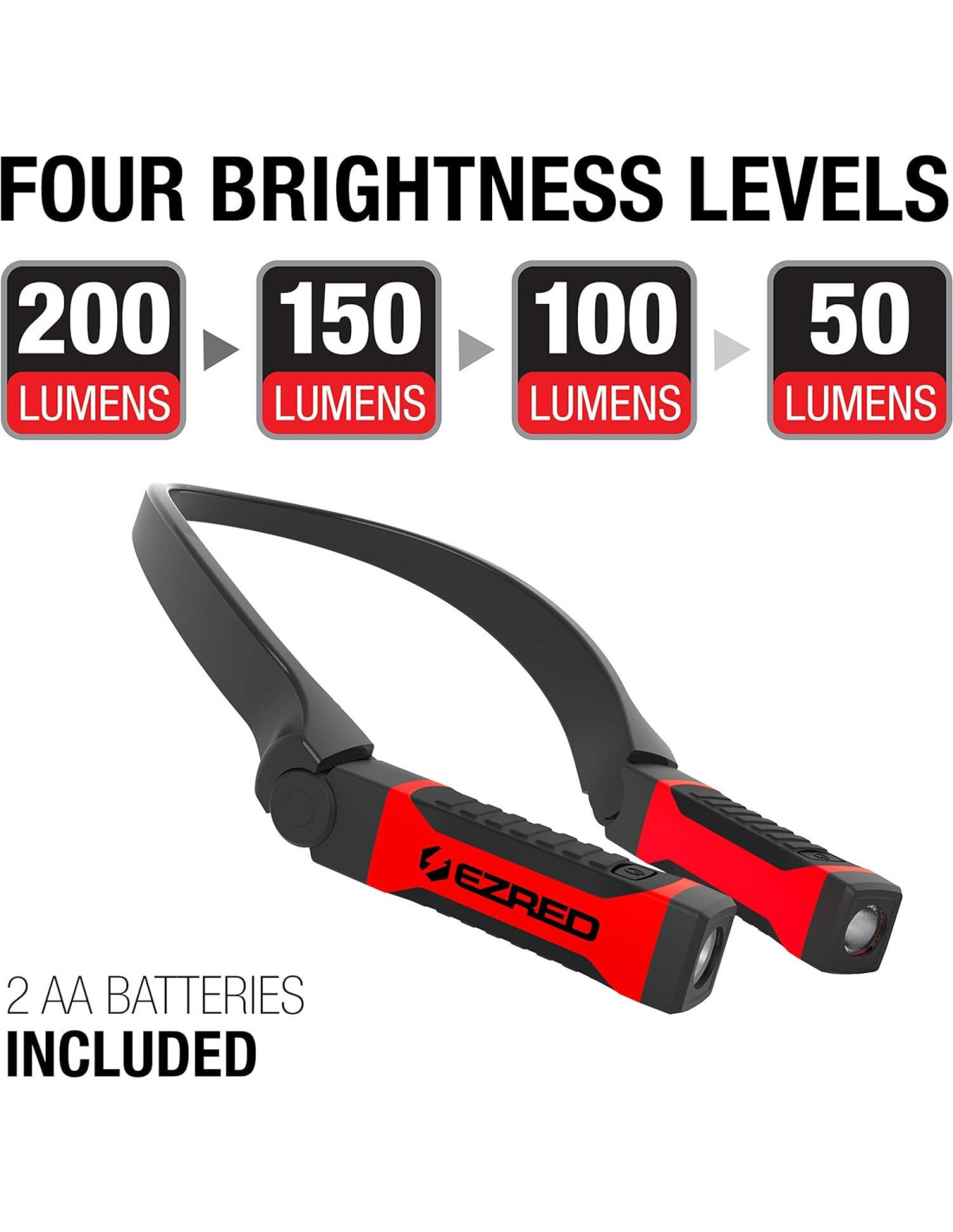 - Luz de Cuello Manos Libres: Esta Luz Resistente y Resistente al Agua Deja Tus Manos Libres Para Trabajar. Se Apoya En Tu Cuello Sin Dejar Marcas de Sudor y Se Puede Limpiar Fácilmente. Funciona Con 2 Pilas AA (Incluidas)