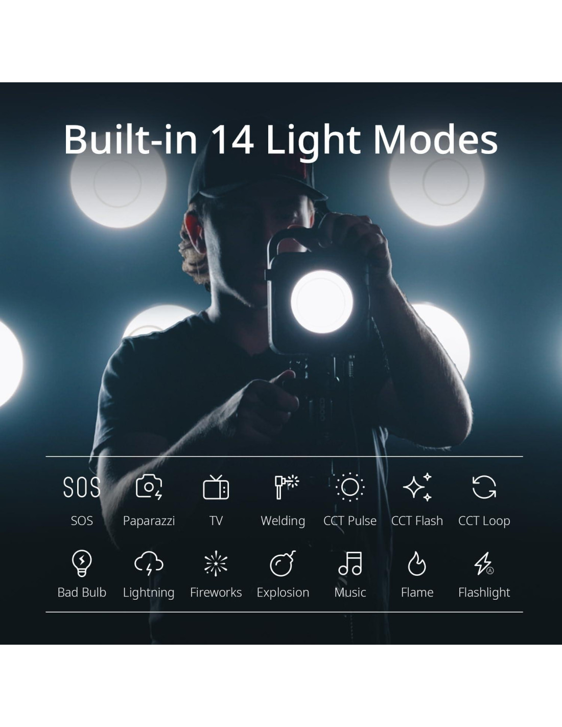 - Ligeramente más Brillante Pesa solo 1.56kg (3.44lbs), este potente dispositivo ofrece temperaturas de color ajustables, 300W de alta luminosidad y una excepcional precisión de color. Experimenta un brillo máximo de 15500Lux @1M (3.3ft) y da vida a cada detalle con calidad cinematográfica. CRI>95 TLCI>97 CQS>94 TM-30 Rf 94 (en promedio) TM-30 Rg 101 (en promedio).