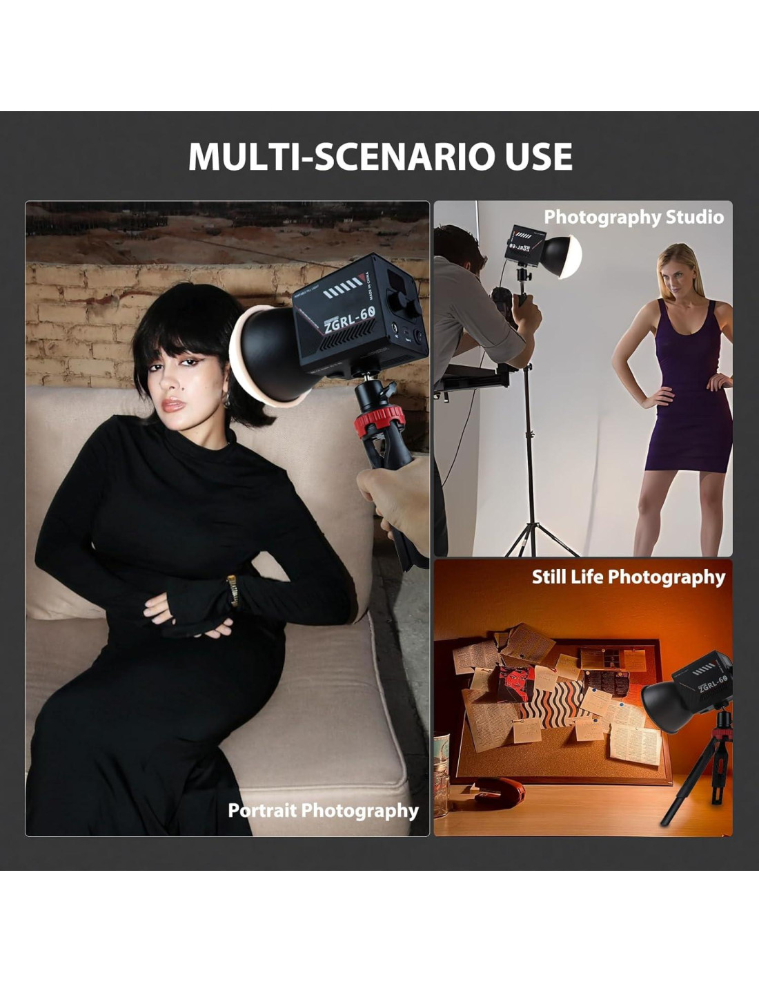 - BATERÍA INCORPORADA DE 8000mAh: potencia de salida alta de 60W, larga duración de la batería, completamente cargada la máxima brillantez se puede usar durante 70 minutos, la mínima brillantez se puede usar durante 1200 minutos, soporta tres opciones de energía: batería incorporada / carga por puerto Type-C / adaptador de corriente DC, batería de alta capacidad incorporada para que tu proceso de grabación al aire libre no se interrumpa.