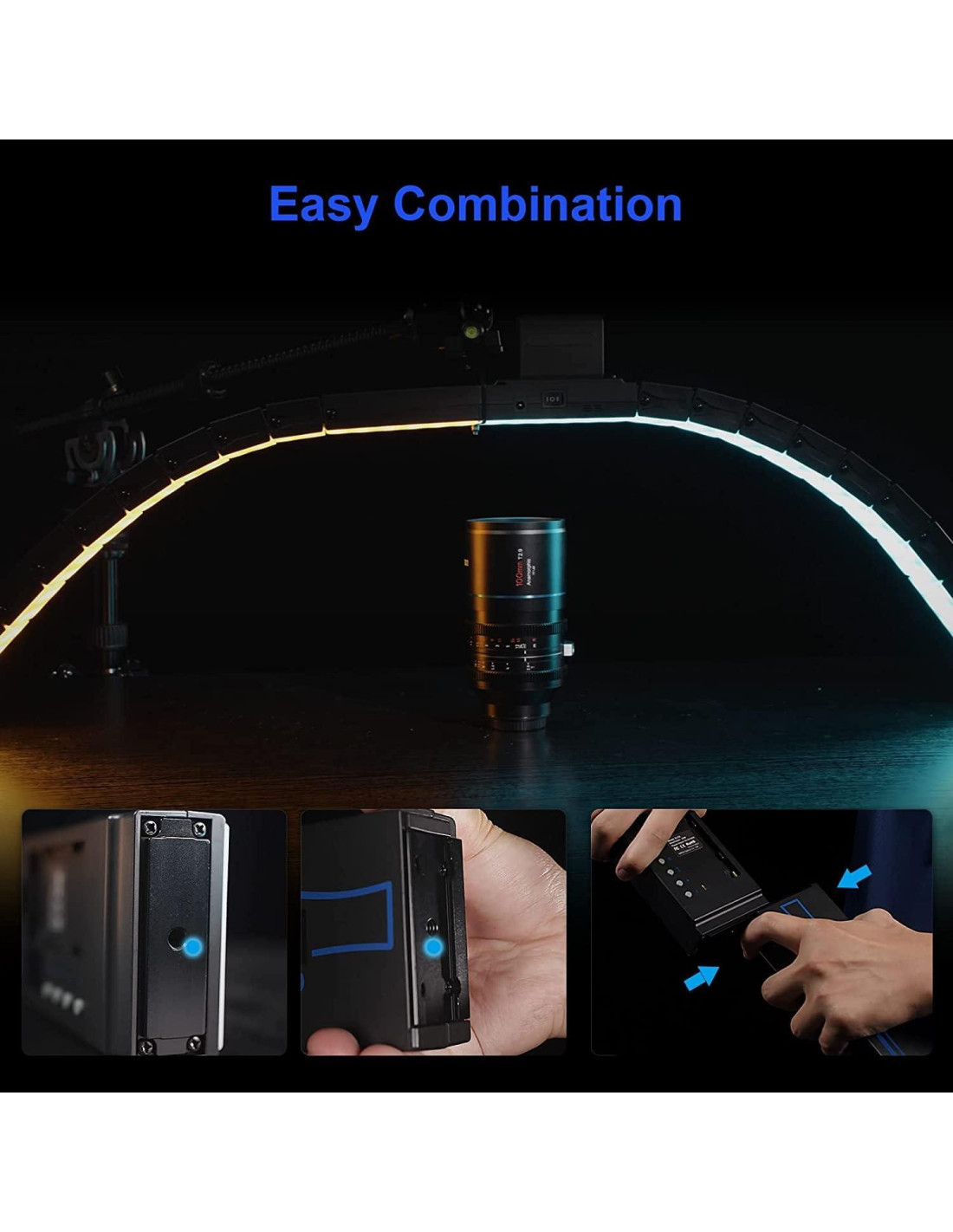 - DISEÑO DE COMBINACIÓN RÁPIDA - Cada extremo del panel de luz LED SIRUI B25R cuenta con un diseño de liberación rápida, que te permite combinar sin problemas varias luces juntas para una fuente de luz más larga y brillante. El panel de luz suave flexible se puede combinar libremente en una variedad de formas que no se pueden lograr con fuentes de luz planas.