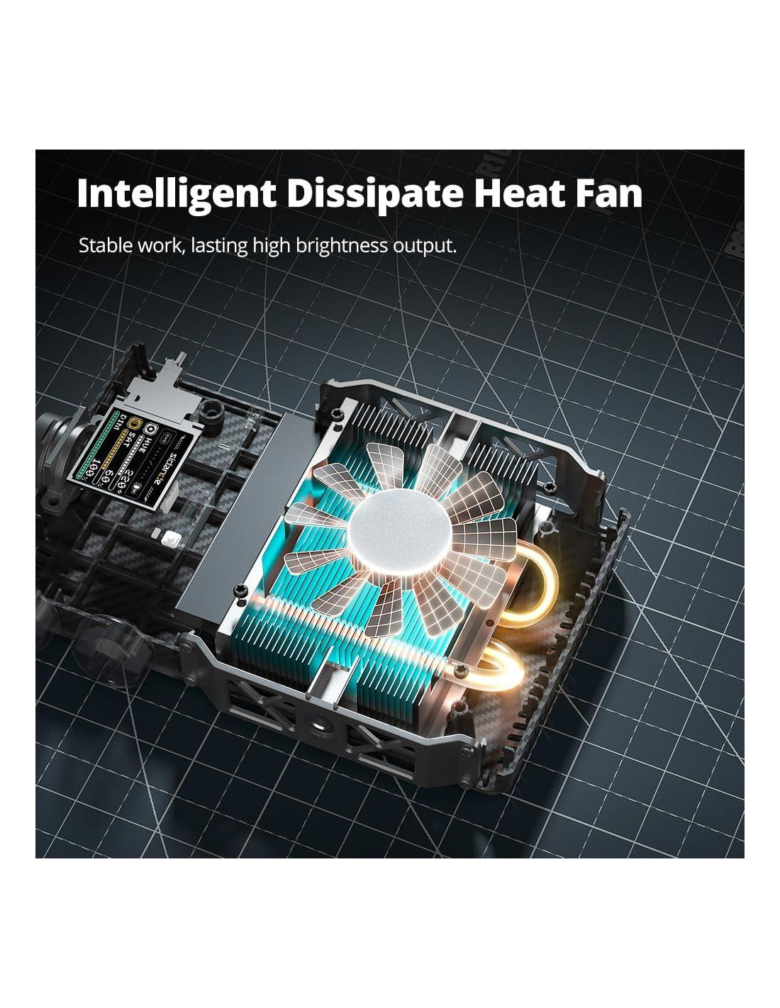 - Tamaño Pequeño, Máximo Enfriamiento: Ambitful Q100Lite combina un tamaño compacto con una eficiencia de enfriamiento mejorada. Incluye un ventilador y un disipador de calor personalizado para un rendimiento de iluminación estable y ligero.