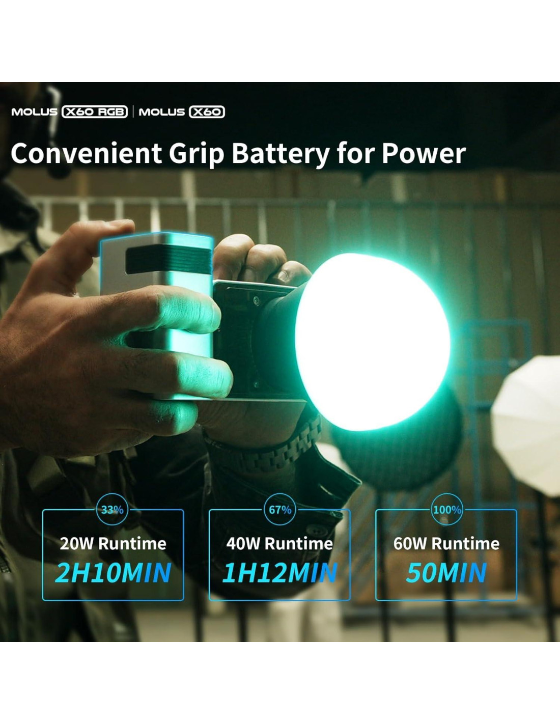 La serie ZHIYUN MOLUS X60 puede ser alimentada con la nueva batería de agarre. Diseñada para la comodidad y construida para la acción, disfruta de hasta