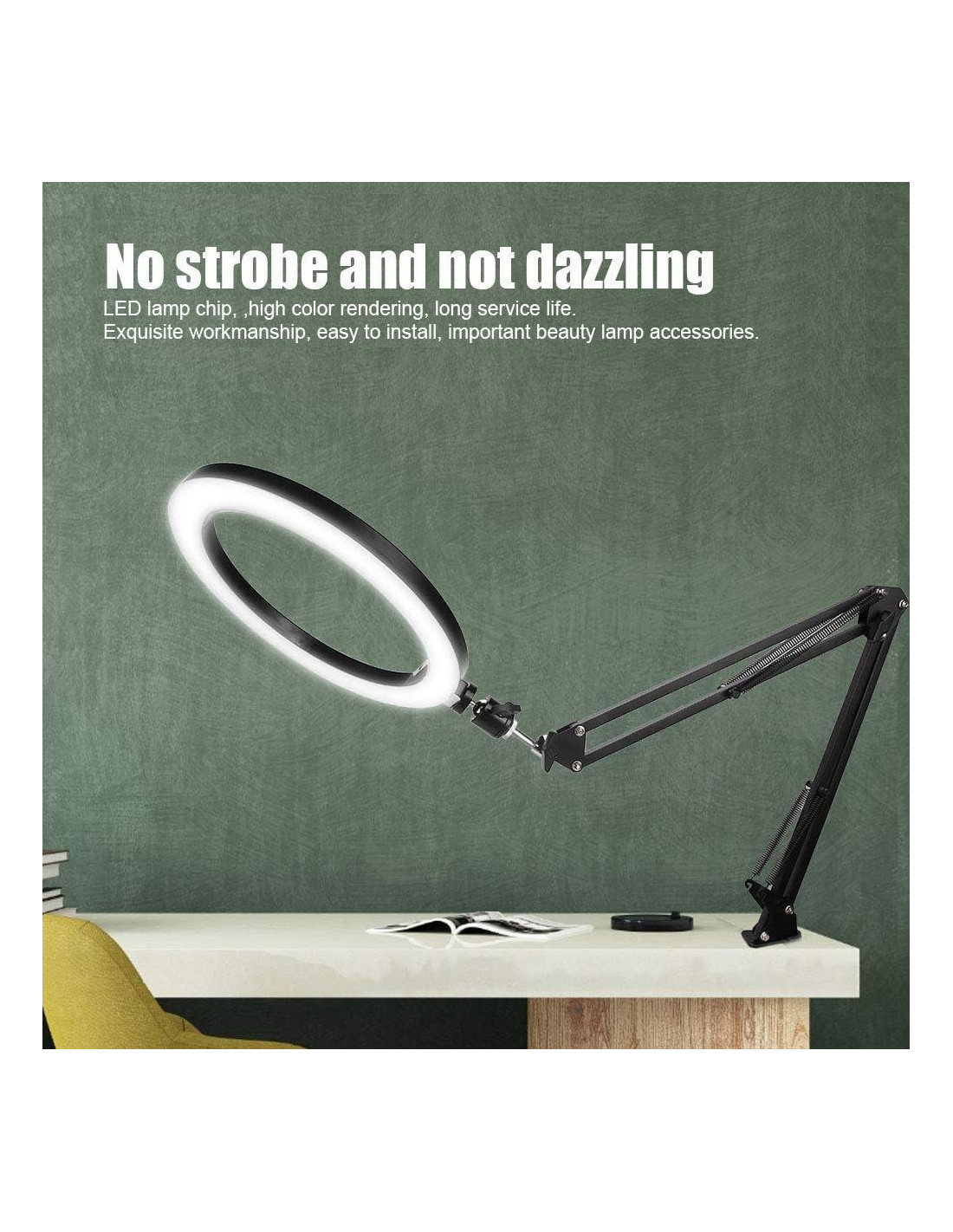 - Alta Reproducción Cromática El anillo de luz está hecho de cuentas LED que ahorran energía, su disipación de calor es excelente, unidad de corriente constante y alta reproducción cromática, suaviza la fuente de luz y mejora el tono de piel en la fotografía de retratos. Mecha de lámpara LED, sin parpadeo y no deslumbrante, alta reproducción cromática, larga vida útil.