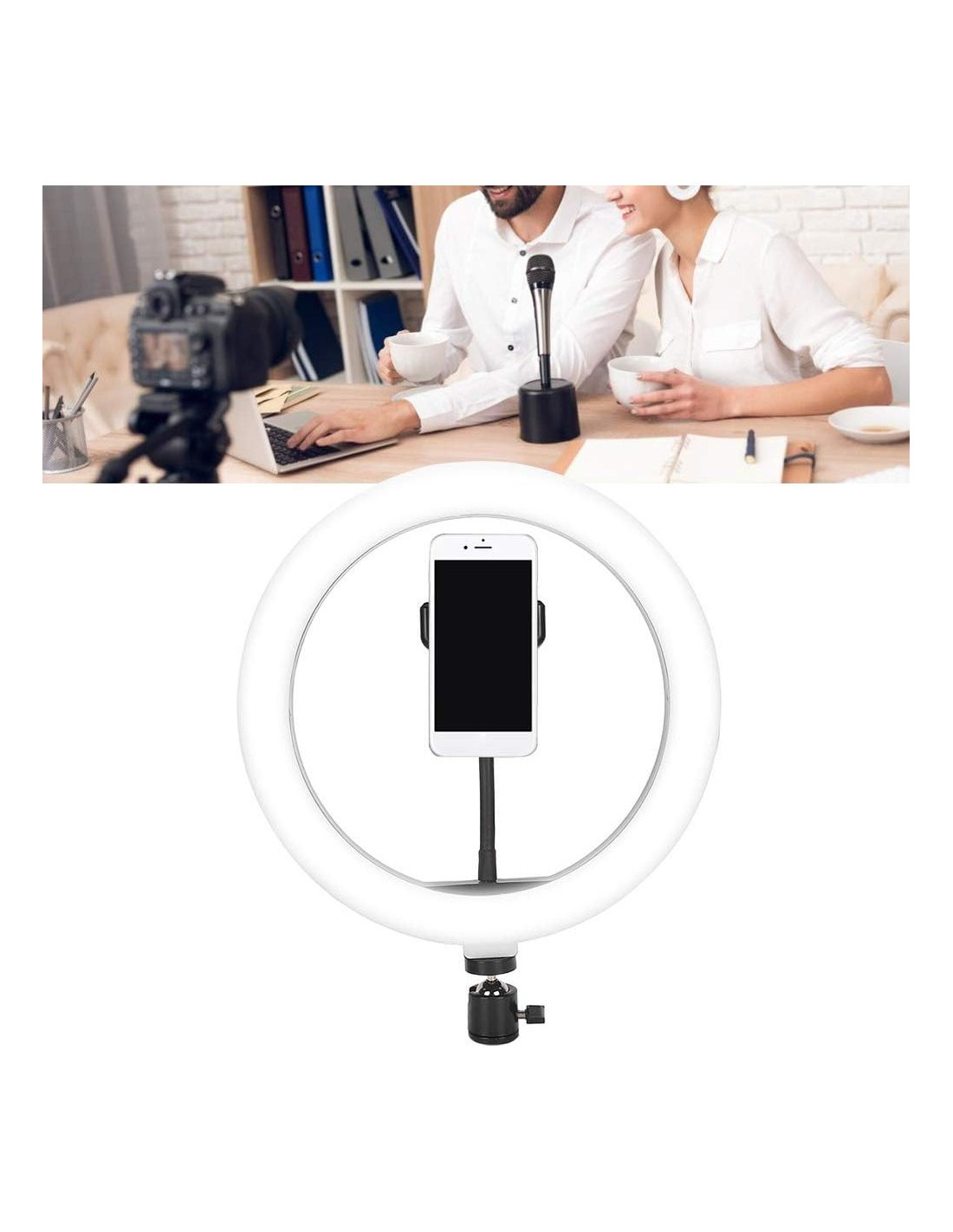 - Anillo de Luz de Selfie de Belleza Multifuncional El diseño 2-en-1 combina soporte para teléfono y luz de anillo de selfie, es una herramienta profesional para crear videos en vivo/grabaciones con teléfono inteligente o computadora, maquillarse o tomar grandes fotos de selfie en áreas oscuras son ambas excelentes con esta luz de anillo. Amplia gama de aplicaciones, adecuada para arte de uñas, belleza, estudio, trabajo, maquillaje, etc.