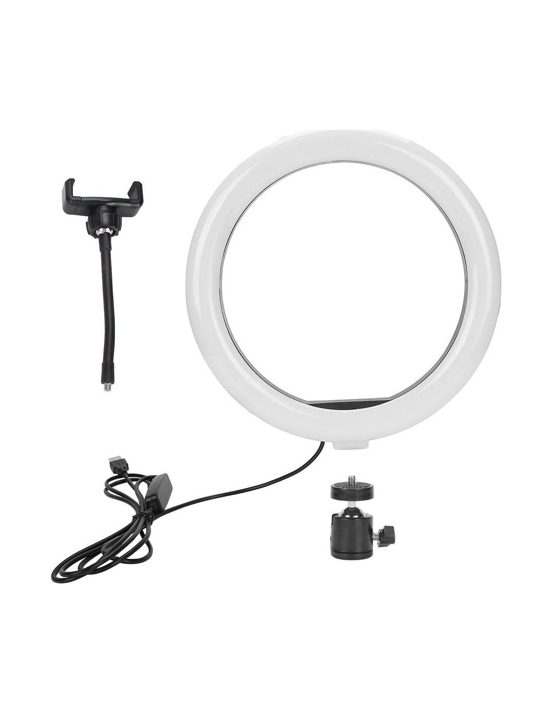 ZJchao se centra en productos de salud y belleza, abarcando múltiples subcategorías, incluyendo tatuajes, belleza, fitness y otros productos. Establecer un efecto de marca más fuerte a través de una posicionamiento de servicio integral diversificado, grupos de consumidores objetivo segmentados y un amplio espacio de desarrollo de mercado. ZJchao no olvida el concepto de servicio orientado a las personas y a la honestidad en su gestión, gana confianza con entusiasmo y construye su marca con integridad. Alta Reproducción Cromática El anillo de luz está hecho de cuentas LED que ahorran energía, su disipación de calor es excelente, unidad de corriente constante y alta reproducción cromática, suaviza la fuente de luz y mejora el tono de piel en la fotografía de retratos. Mecha de lámpara LED, sin parpadeo y no deslumbrante, alta reproducción cromática, larga vida útil. Conveniente de Usar La luz de anillo LED se puede montar en el soporte y llevarla a cualquier lugar, también se puede quitar del soporte en cualquier momento, la cabeza de bola del trípode puede rotar 360 grados para ajustarse a cualquier ángulo (el soporte no está incluido). Luz de Anillo de Maquillaje USB El puerto USB se puede usar con múltiples dispositivos, como conectar a la computadora, laptop, batería móvil y cargador USB. Podrás disfrutar de la luz de anillo LED en cualquier momento. Mano de obra exquisita, fácil de instalar, accesorios importantes para lámparas de belleza. 1. 3 modos de atenuación, 9 niveles de brillo ajustable, para satisfacer las necesidades de diferentes escenarios de trabajo. 2. Fuente de luz difusa, luz de compensación de múltiples ángulos de difusión, elimina el parpadeo de múltiples capas y asegura la comodidad visual. 3. Mecha de lámpara LED, sin parpadeo y no deslumbrante, alta reproducción cromática, larga vida útil. 4. Mano de obra exquisita, fácil de instalar, accesorios importantes para lámparas de belleza. 5. Amplia gama de aplicaciones, adecuada para arte de uñas, belleza, estudio, trabajo, maquillaje, etc. Condición: Nuevo. Tipo de Artículo: Cabezal de Anillo de Luz. Potencia: 18W. Fuente de Luz: Tres tipos de fuentes de luz (Luz blanca, luz cálida, luz blanca cálida). Brillo Ajustable: 9 niveles de brillo. Alcance de Aplicación: arte de uñas, belleza, estudio, trabajo, transmisión en vivo, maquillaje en casa, etc. Características del Producto: sin parpadeo, sin radiación, cuidado ocular. Diámetro del Cabezal de Lámpara: Aproximadamente 26cm (10.2in). 1 x Cabezal de Lámpara. 1 x Soporte para Teléfono Móvil. 1 x Conector. Sin el soporte, se puede usar como lámpara de relleno para aumentar el brillo, o cuando el cabezal de la lámpara en uso está roto y el soporte aún está disponible, reemplazar el cabezal de la lámpara y continuar usando el soporte. Anillo de luz regulable de 10,2" El cabezal de la lámpara adopta diseño de LED, 3 modos de iluminación de color: luz blanca, cálida y cálida con temperatura de color. Cada modo de iluminación tiene 9 brillos ajustables para elegir para satisfacer las necesidades de diferentes escenarios de trabajo. Superficie difusa Fuente de luz, luz de compensación de múltiples ángulos de difusión, elimina las imágenes fantasma de múltiples capas y garantiza la comodidad visual. Alta reproducción cromática El anillo de luz está hecho de cuentas LED que ahorran energía, su disipación de calor es excelente, unidad de corriente constante y alta reproducción.