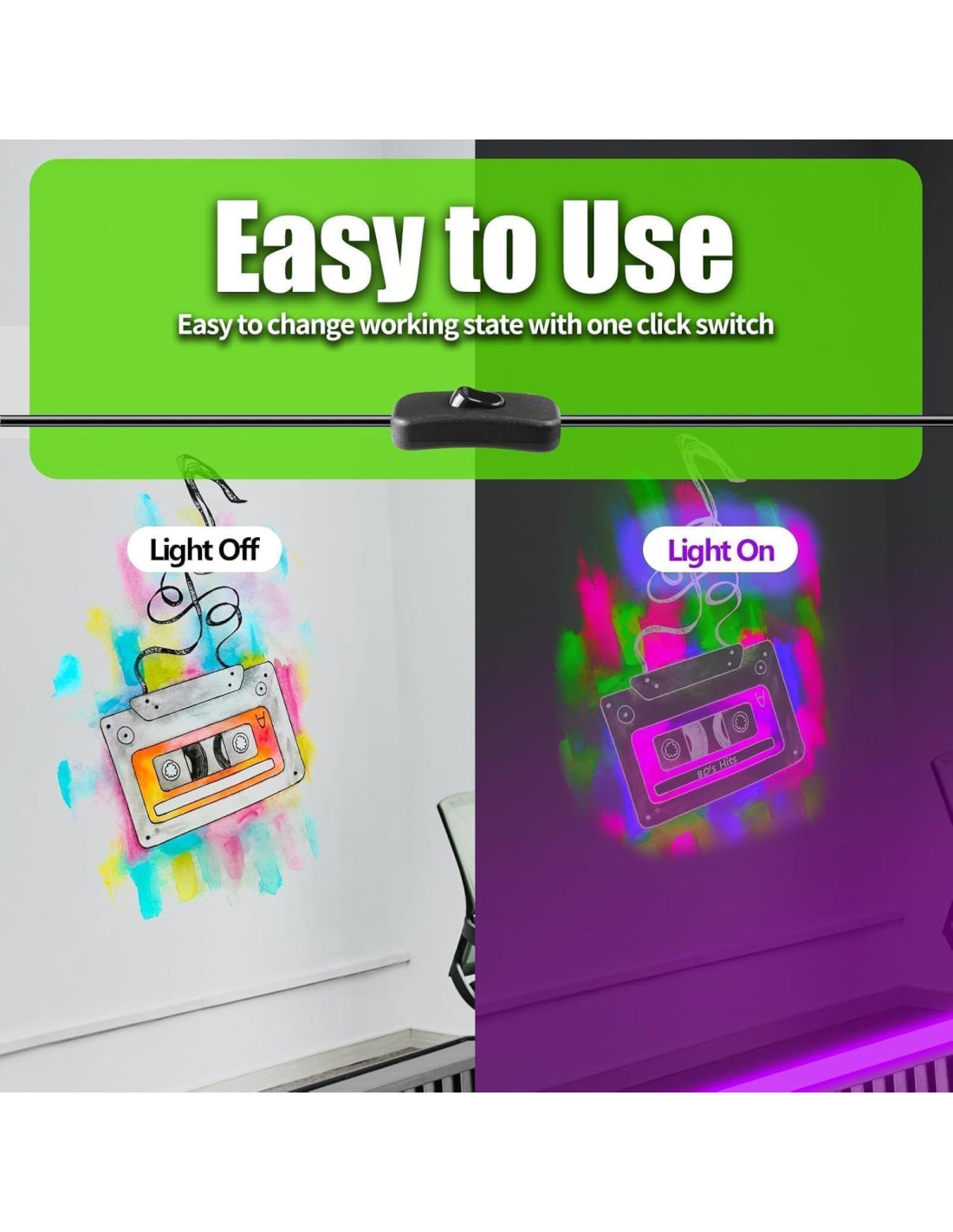 - CABLE MÁS LARGO DE 1.8M (enchufe incluido): THECHAM ha mejorado la longitud del cable, el cable de 1.8m es más conveniente para colocar la barra de luz negra LED donde desees. Interruptor de encendido/apagado y enchufe de EE. UU. para una fácil aplicación. Conectar y usar, brilla en la oscuridad