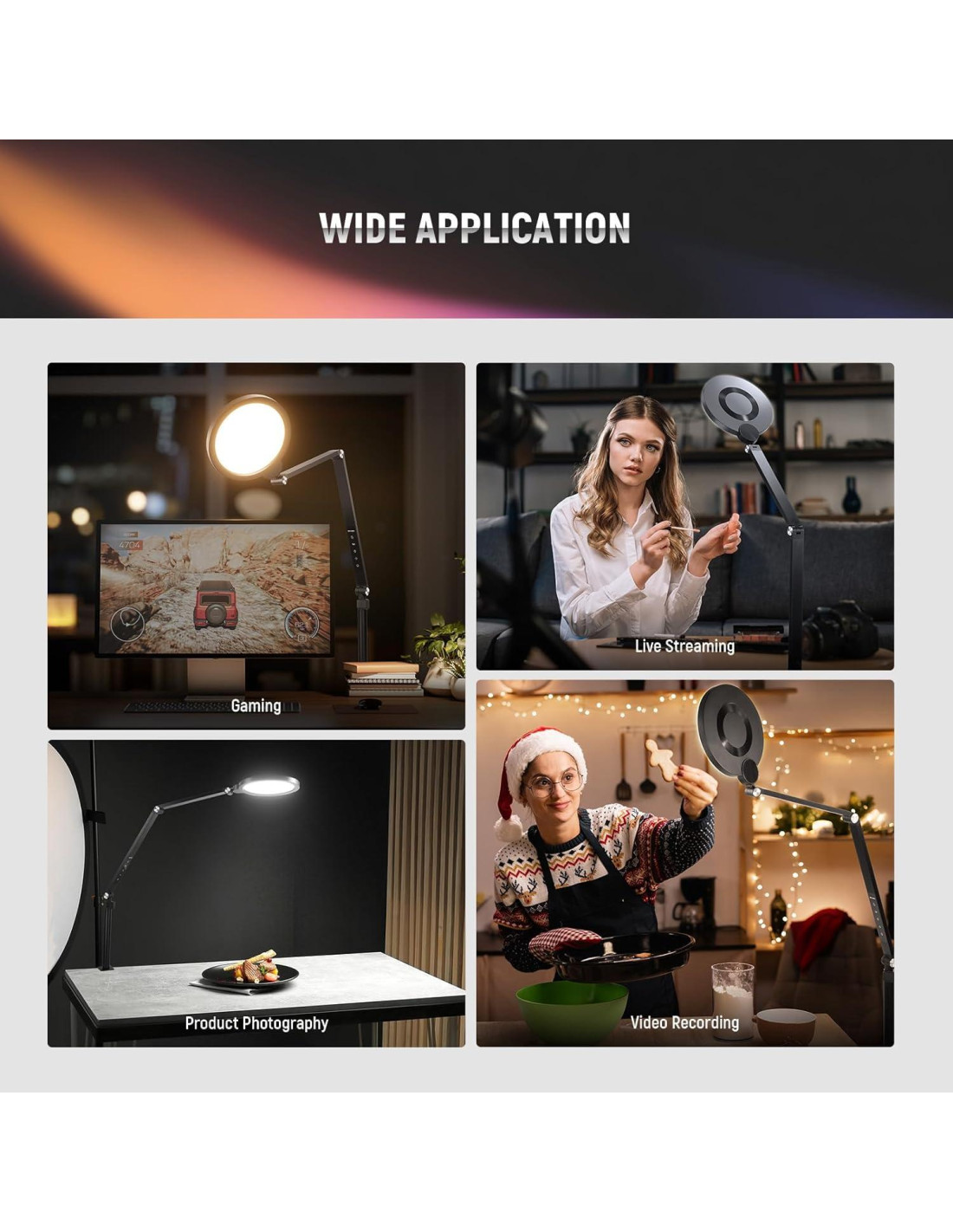 - Luz de Anillo de Llenado de Pantalla Completa R18 18W La luz de llenado LED de sobremesa R18 de 7" con soporte de abrazadera está equipada con 84 LEDs incorporados, ofreciendo una iluminación de hasta 1380lux (0.5m), proporcionando una cobertura de luz amplia que supera a las luces de anillo tradicionales. El panel premium con tecnología de iluminación de borde asegura una iluminación suave y uniforme sin sombras, iluminando tu piel y ocultando imperfecciones faciales para ayudarte a lucir lo mejor posible en cámara