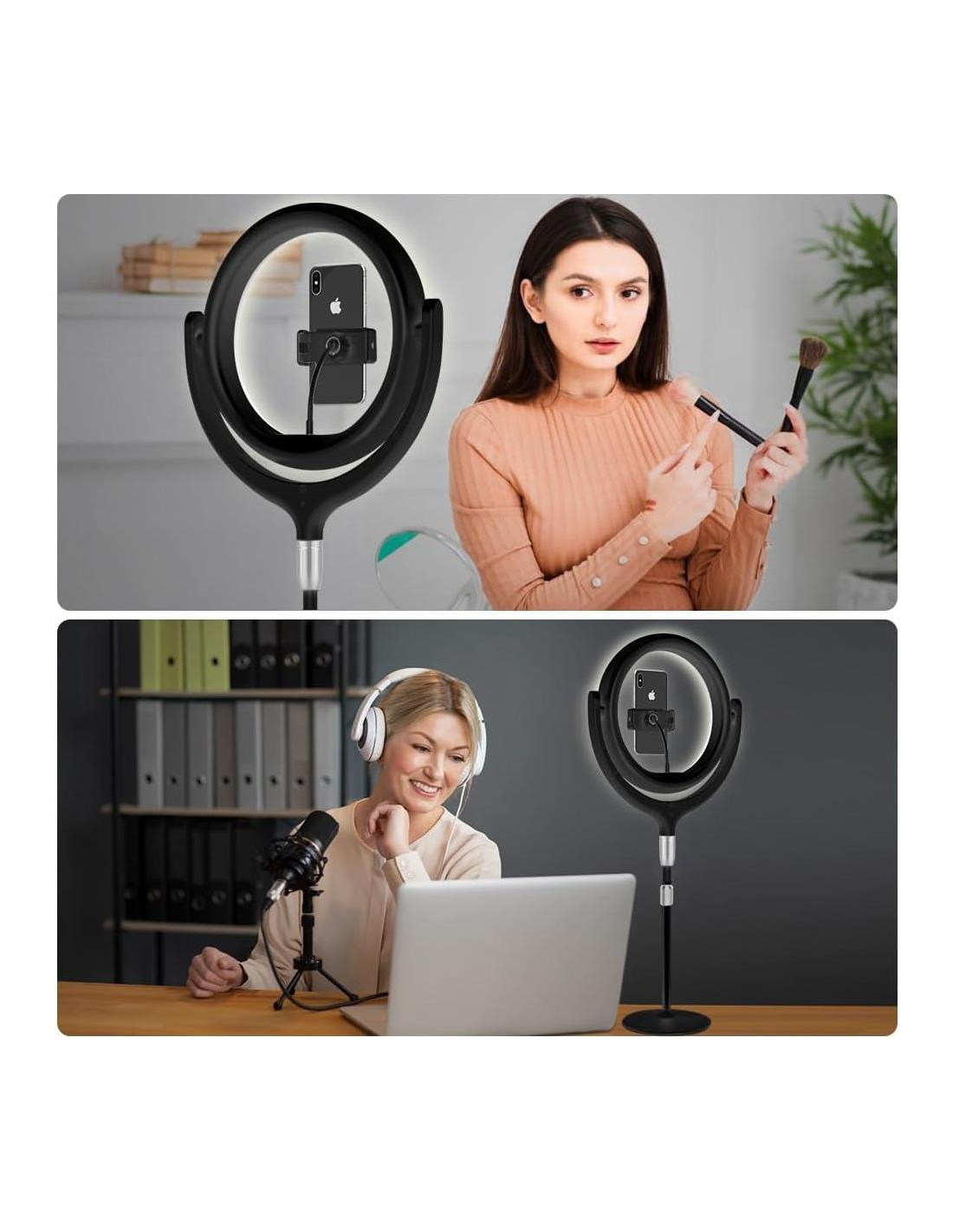 Anillo de Luz de Escritorio con Soporte y Soporte para Teléfono Luz de Anillo de Escritorio para Grabación de Video, Podcast, Selfie, Iluminación de Zoom para Conferencias de Video en Computadora Portátil (Negro)