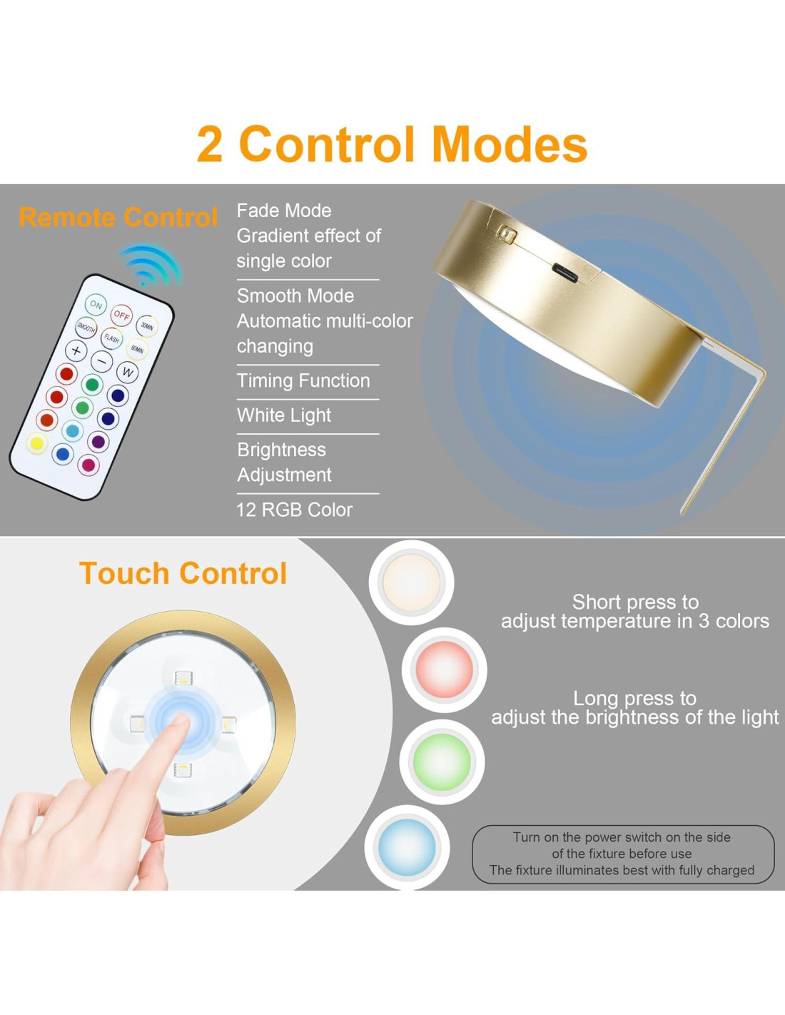 - Versatilidad: Regulable: ajuste de brillo del 10-100%. Función de temporizador: establece la luz de imagen para que se apague automáticamente después de 30 o 60 minutos. Los efectos de iluminación se pueden establecer mediante control remoto o toque manual.