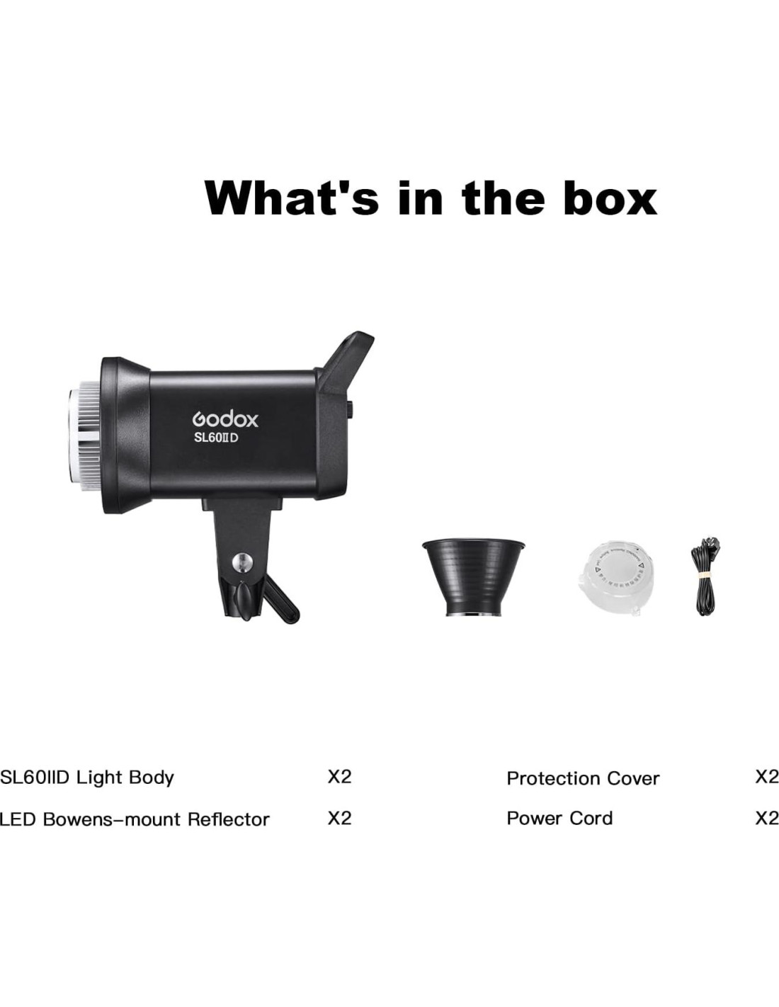 - [SALIDA MÁS FUERTE] Godox SL60IID es la versión mejorada para SL60W/SL-60W, la salida máxima de SL60IID a 1 metro con reflectores estándar es 18,600 y 25,100 Lux respectivamente, produciendo un brillo impresionante. Con atenuación de 0 a 100%, puedes ajustar el brillo con precisión según sea necesario.