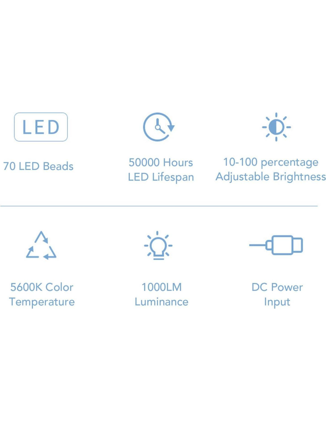 - Potente Luz de Video LED de 10W con 70 LEDs, ofreciendo una iluminación brillante y uniforme para grabaciones de video profesionales y sesiones de fotografía.