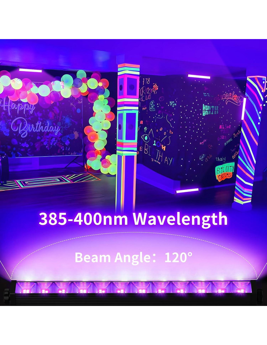 - Luz negra LED potente: Equipado con 40 LEDs premium para crear un excelente efecto fluorescente, la barra de luz negra ISUERFY de 45W es lo suficientemente brillante para iluminar un espacio de 25x25 pies (7.62x7.62 metros), adecuada para su uso en dormitorios, salas de juegos y aulas. El paquete de 4 barras de luz negra de 45W puede iluminar 2500 pies cuadrados (232.26 metros cuadrados) de espacio a la vez, adecuado para grandes espacios como fiestas fluorescentes, gimnasios, etc. El ángulo de haz amplio de 120 grados puede iluminar con precisión la posición designada y cubrir ampliamente un área.