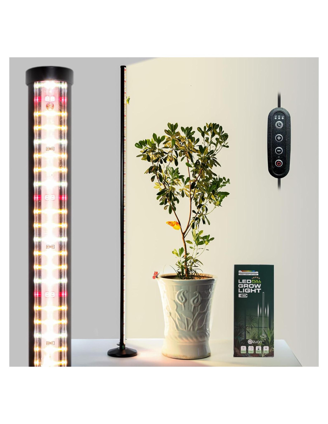 - Características de un temporizador automático de ciclo dual que ejecuta la duración de luz elegida (4H/8H/12H) dos veces al día, ideal para mantener la consistencia con esta luz de planta interior. Ajusta el brillo para coincidir con las necesidades de cada planta utilizando el control remoto inalámbrico o el panel de teclas, haciendo que esta luz de crecimiento de plantas sea fácil de personalizar. (Nota: el control remoto requiere 2 pilas AAA, no incluidas).