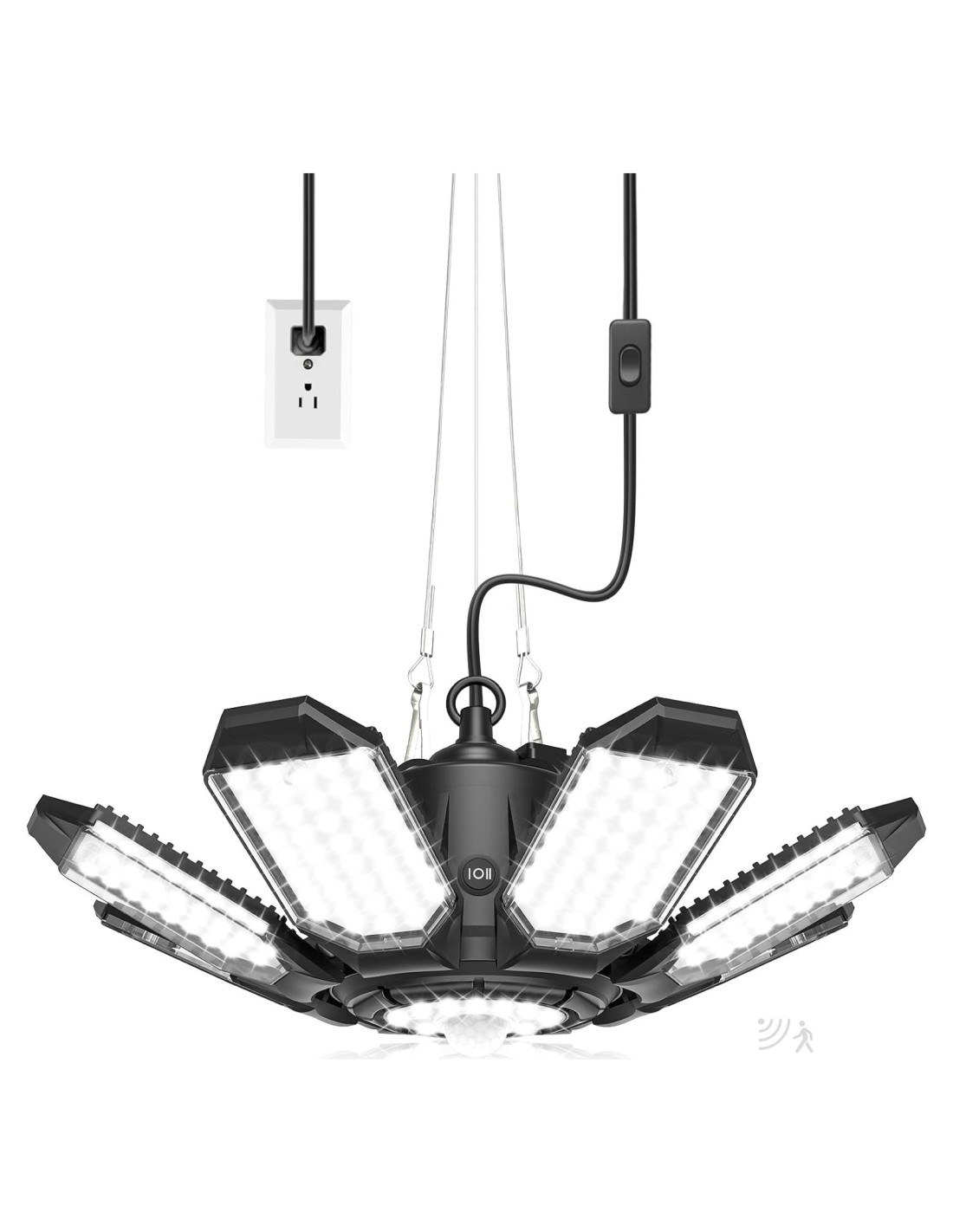 - Configuración plug-and-play - cuelgue directamente o use cadena ajustable (0-1m). Estas luces de garaje con sensor de movimiento son perfectas para garajes, talleres, sótanos, áticos, graneros, unidades de almacenamiento, lavanderías y más.